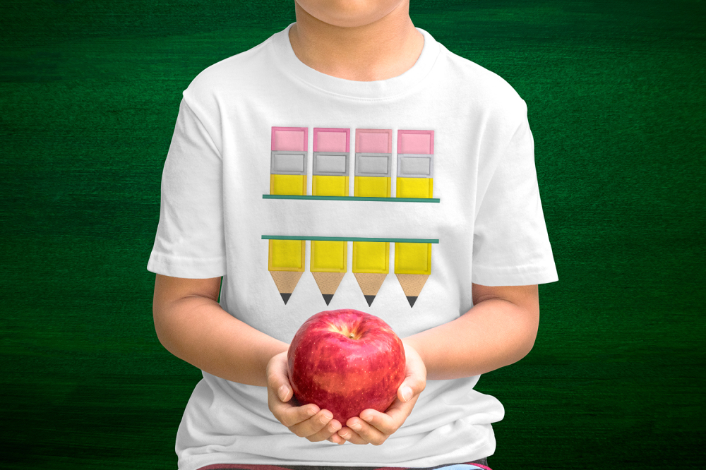 This adorable applique design features 4 pencils in a row with a split in the middle where you can add your own text. Perfect for back to school, end of school, and 100 days of school celebrations! Each pencil can be done in a different color if you like.