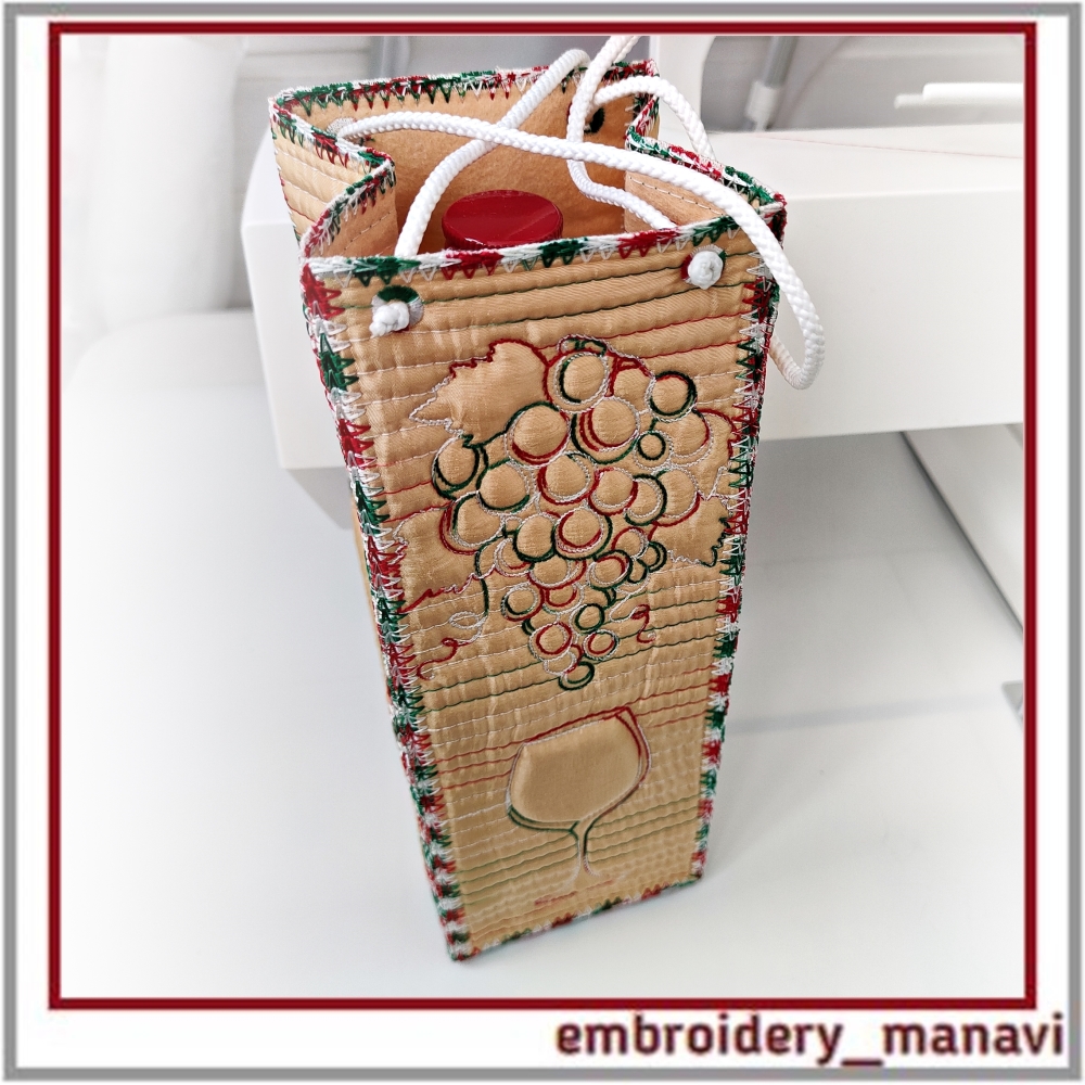 👉A detailed in the hoop machine embroidery design for creating a structured alcohol bottle gift cover. The set includes six digital designs, a silicone window back part, and a grape branch motif that can also be used as a decorative panel by skipping the last color. This project makes an elegant handmade gift created with love. A full step by step instruction is included. Instant download. Brand: Embroidery Manavi 05.