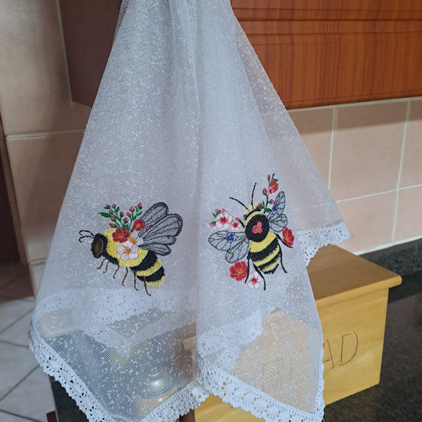 Stitch these bees with the flowers on your kitchen and dining room projects. They will also looks beautiful on bags, quilts and clothing.