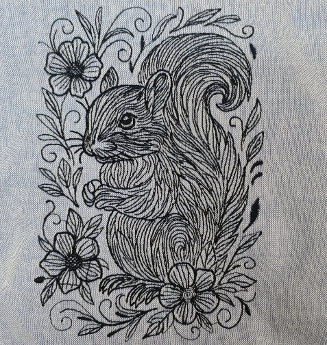 This squirrel line embroidery design is caught mid-heist, clutching its prize with a cheeky glint in its eye and a tail that swirls like a woodland crown. Framed by blossoms and leafy curls, it's the ultimate mix of playful mischief and rustic charm perfect for hoop art, cushions, totes, or any project that deserves a dash of woodland sass.