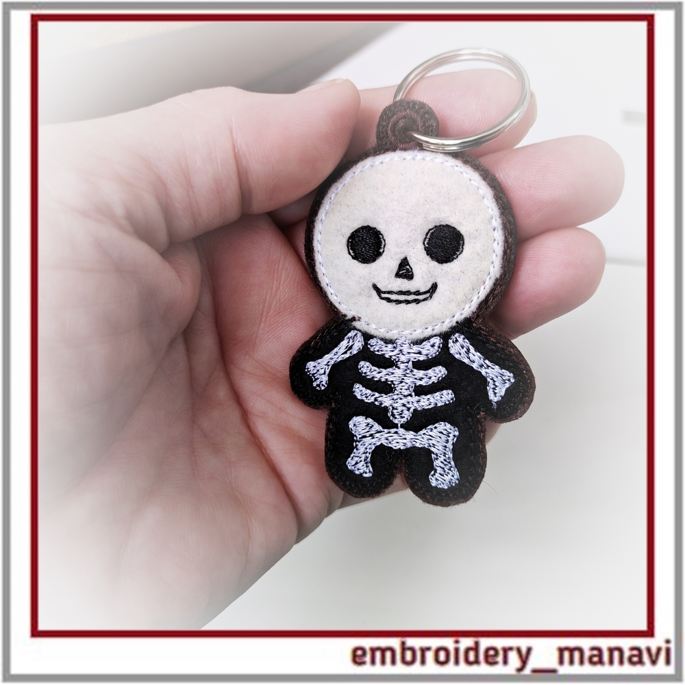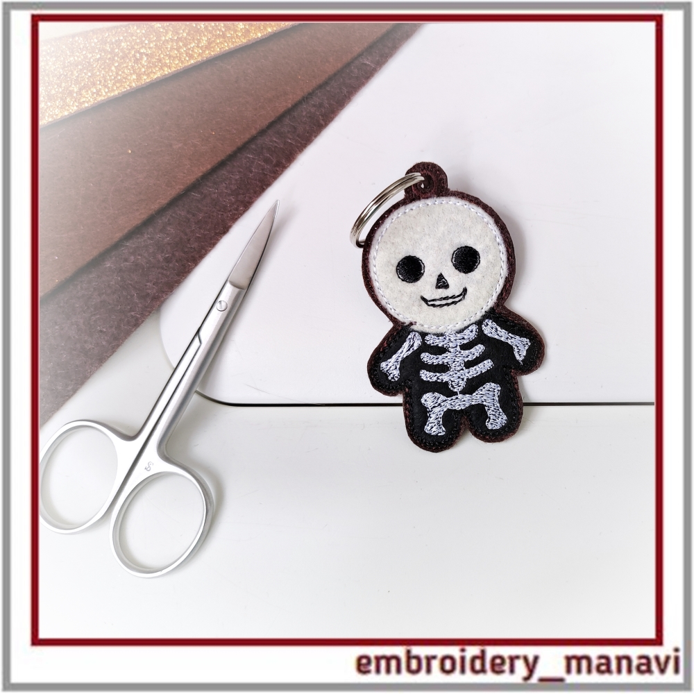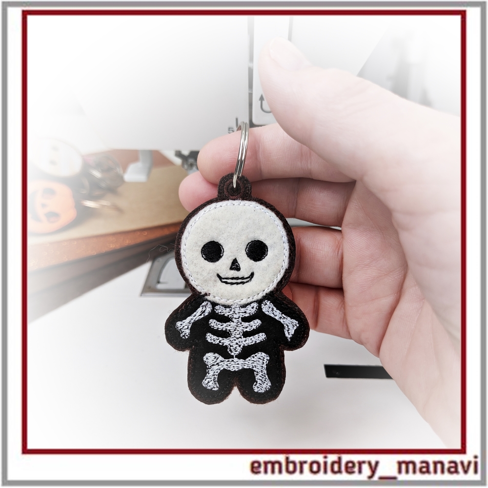 👉 Meet Bonesy Boo — a playful skeleton ready to rattle into your Halloween creations! This in-the-hoop machine embroidery design is stitched on felt and perfect for crafting a keychain, pendant, tag, or spooky ornament. Quick to stitch and beginner-friendly, this digital project adds a fun twist to treat bags, party favors, or seasonal décor. Delivered as a digital file for instant download, compatible with most embroidery machines. Design size 1.78 x 2.89. Step-by-step instructions.