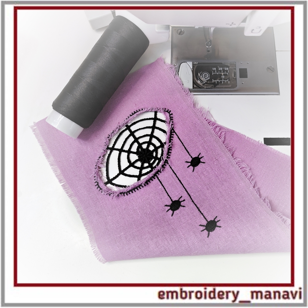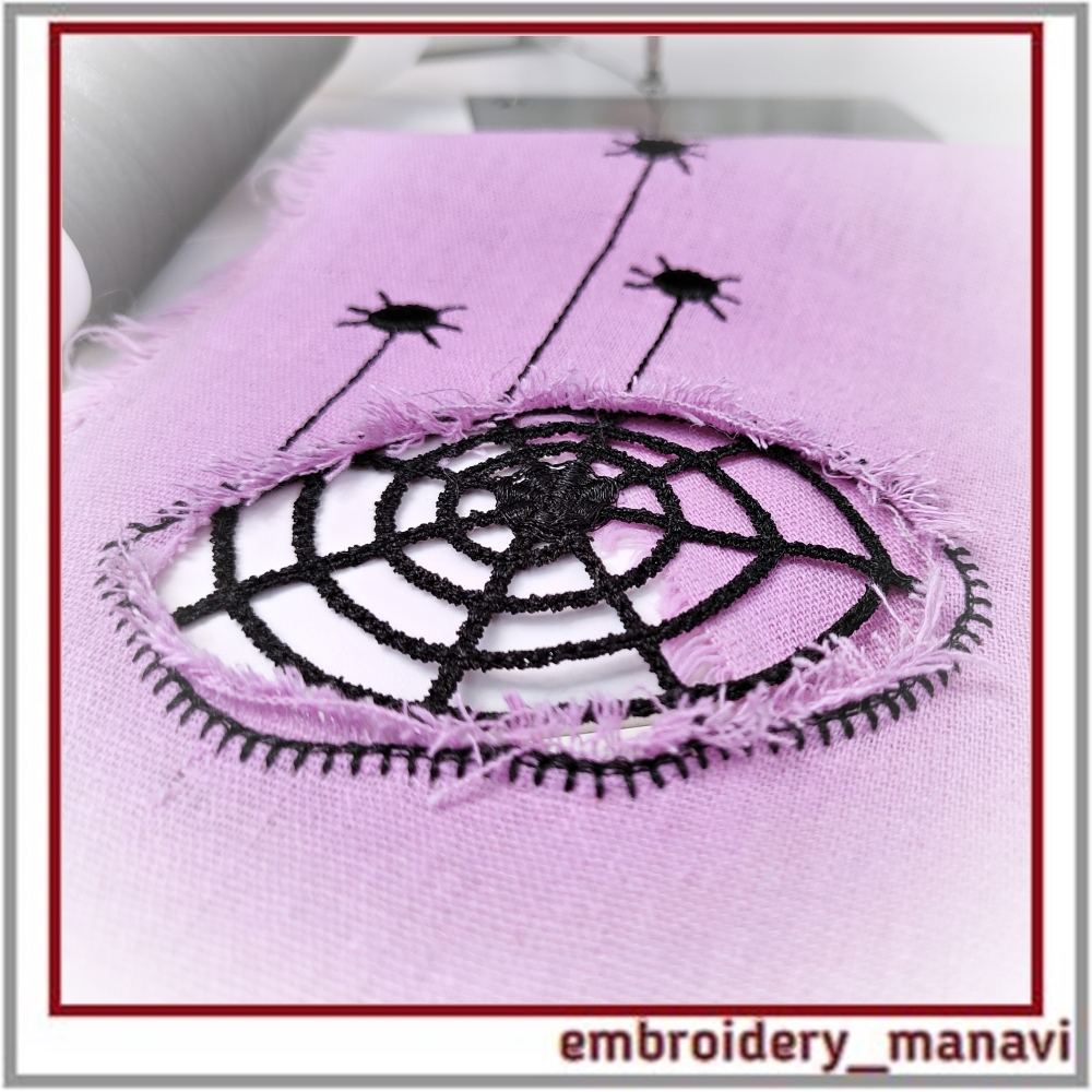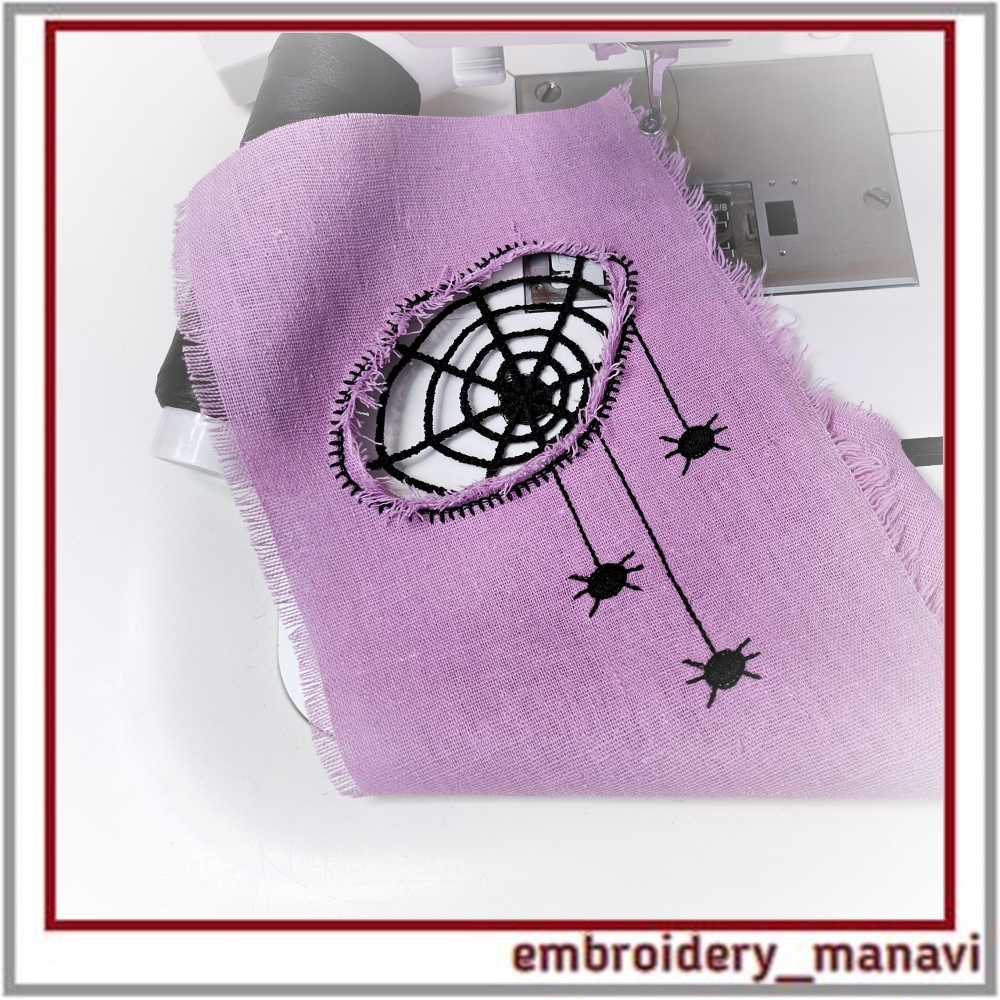 👉Add a touch of eerie elegance to your wardrobe with this intricate machine embroidery design featuring a spider web and dangling spiders. Crafted as a Free Standing Lace (FSL) patch, it’s perfect for repairing clothes, enhancing accessories, or creating a bold decorative statement. Whether you're prepping for Halloween or just love gothic accents, this digital project is ready for instant download and includes everything you need to stitch it with ease. A spooky-chic detail that turns any garment into a conversation piece! Size 3.94 x 5.40.