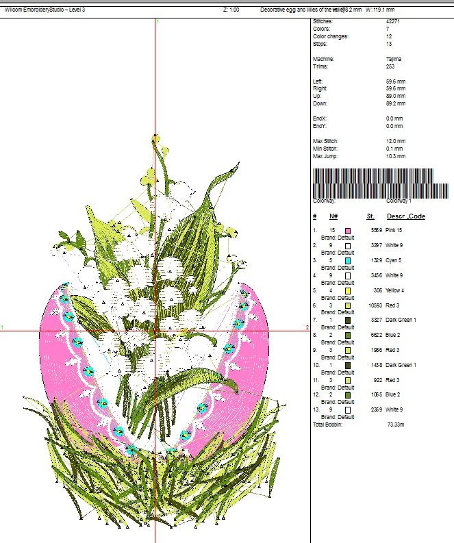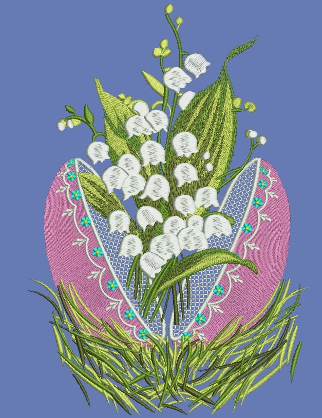 Beautiful decorative egg with lilies of the valley embroidery design, perfect for holiday projects, spring themes, home decor, and elegant textiles. Professionally digitized and tested for excellent stitch quality.