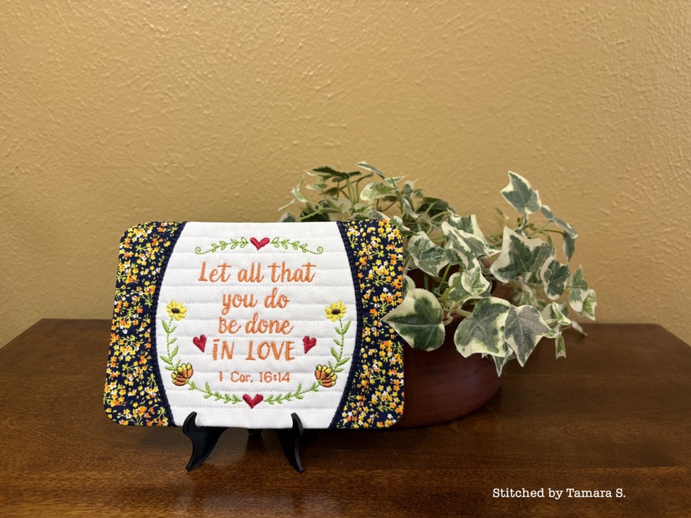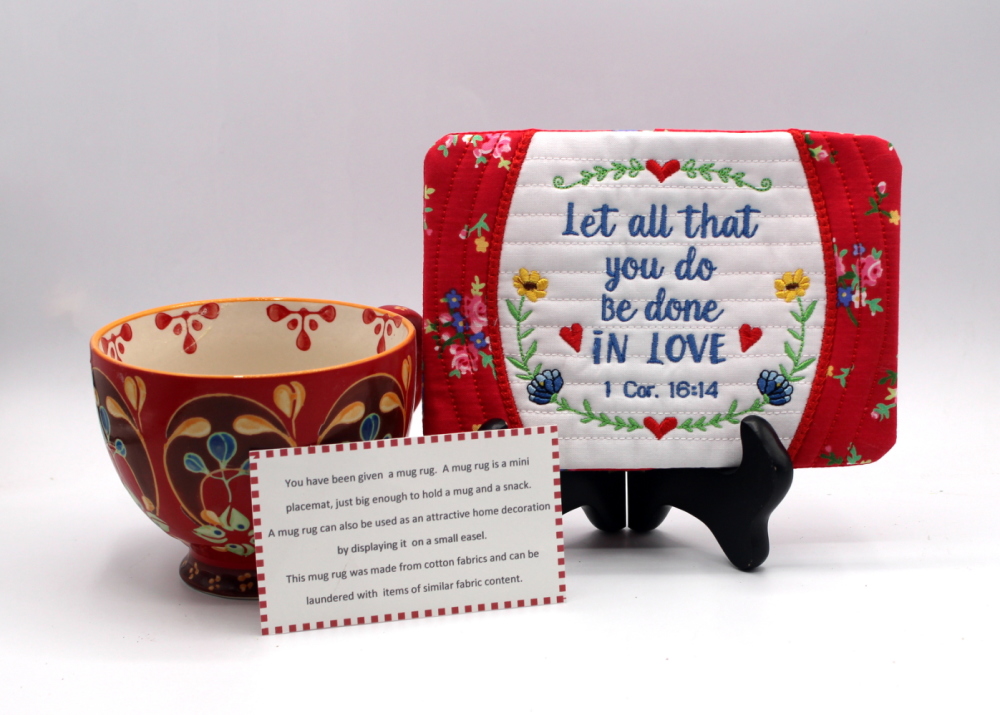 done, in love, mug, rug, let all that you do be done in love, religious