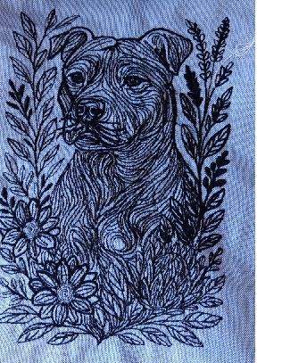 A loyal companion captured in swirling linework, framed by blossoms that echo his steady spirit. This line embroidery design speaks of trust, devotion, and quiet strength perfect for hoop art, tote bags, or cushions that celebrate man's best friend. Stitched in variegated thread, his form glows with depth and warmth, just like the bond he represents.