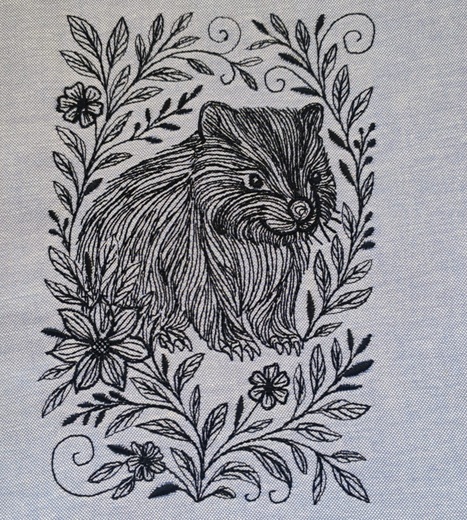 This wombat has mastered the art of pretending he's not the one who dug up your flowerbed while sitting inside a wreath of the evidence. With his fluffy cheeks, scruffy fur and a whole halo of leafy flourishes, he brings quirky charm to hoop art, bags, cushions anywhere that needs a dash of adorable, earth-moving attitude.