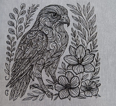 Strong and untamed, Floral Raptor captures the sharp gaze and detailed feathers of a bird of prey, softened by blooming florals and swirling linework. This embroidery design strikes the perfect balance between strength and grace, making it ideal for hoop art, jackets, or cushions. Stitch in variegated threads for wings that truly come alive.