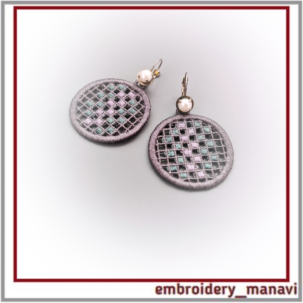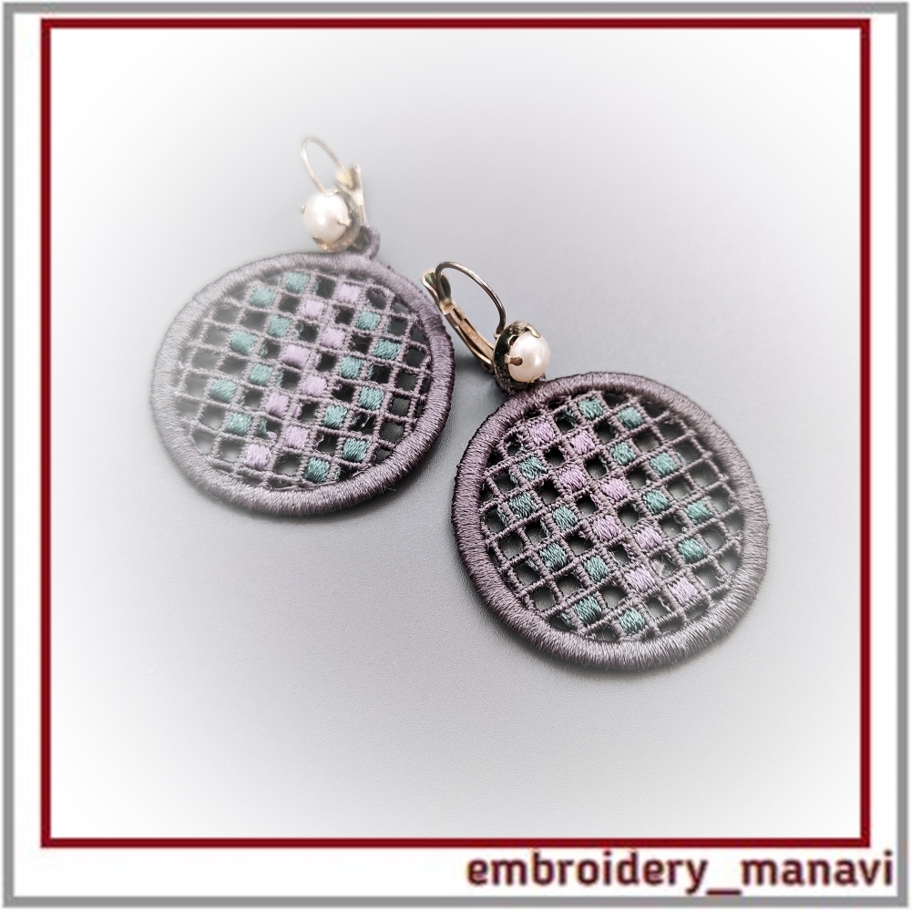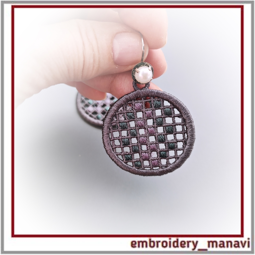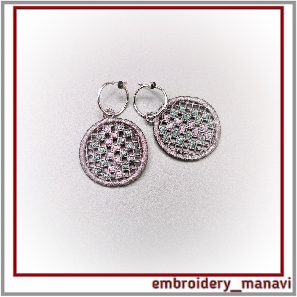👉Embroidery FSL holiday, wedding, birthday jewelry. Round earrings or pendant in the hoop. Free standing lace earrings motif embroidery patterns. Small hoop. Digital Machine Embroidery Design. Instant download. In The Hoop embroidery project. ITH embroidery design.