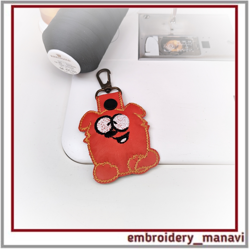 funny, cartoon dog, keychain, key fob, animal, ith, in the hoop