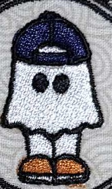 Adorable little Ghost Boy with a ball cap sketchy Halloween embroidery design!