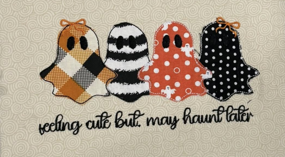 Set of 4 Adorable Ghosts Applique with a bean stitch and saying!