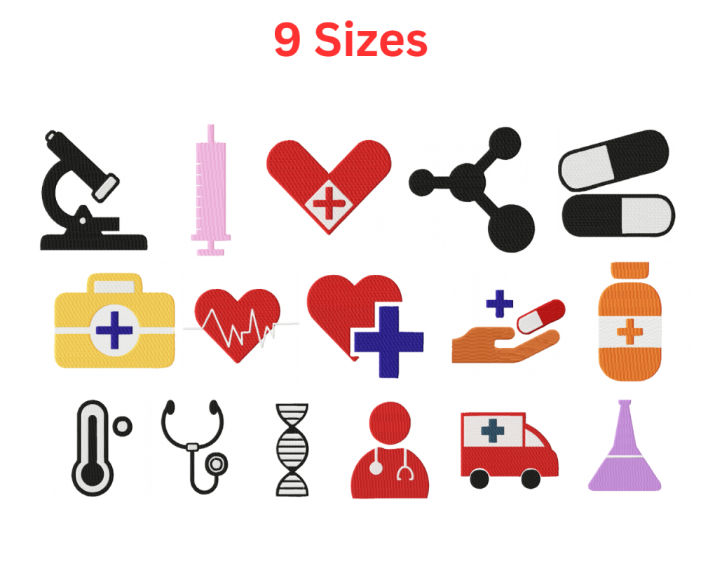 healthcare, icon, set, microscope, needle, bandaid, heart