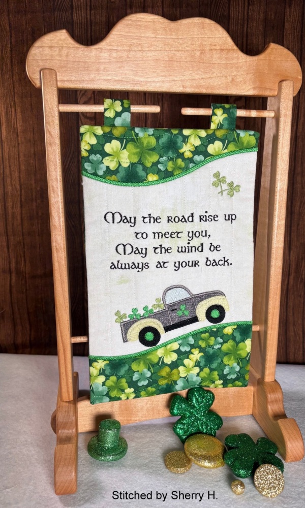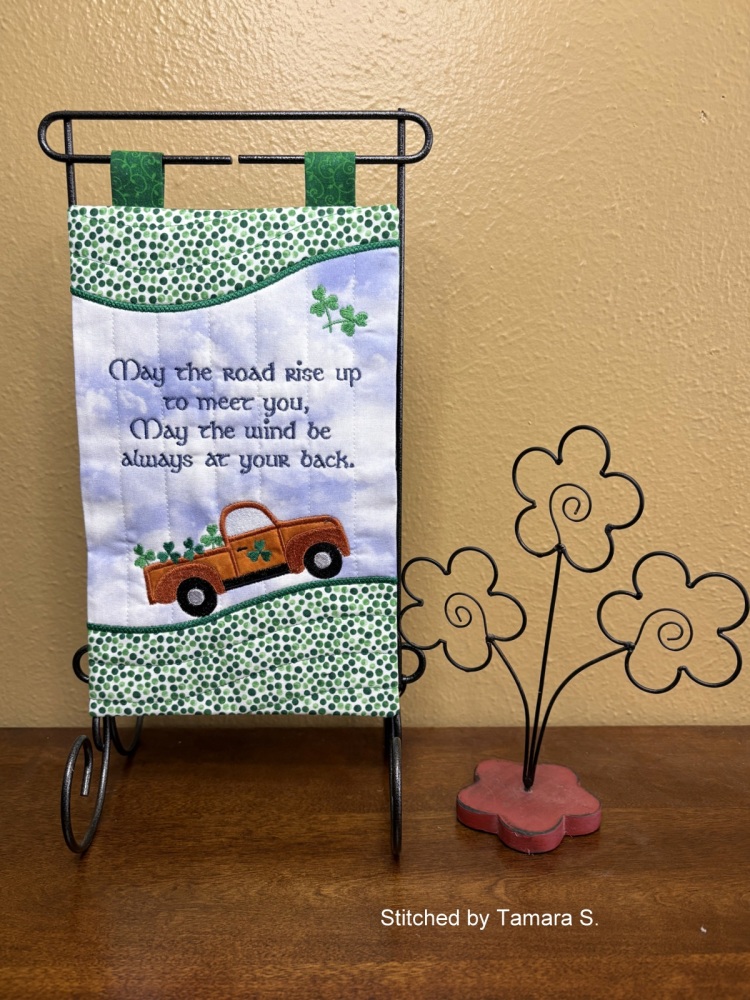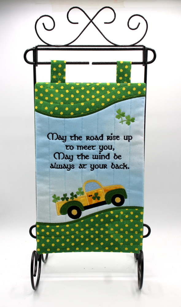 irish blessing, st patricks day, truck, mini, quilt, may the road rise up to meet you, may the wind always be at your back