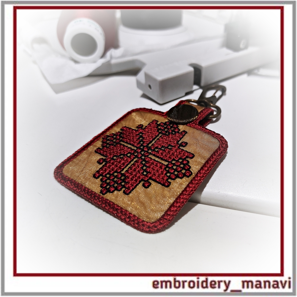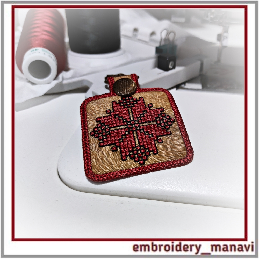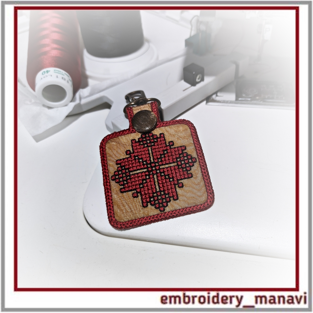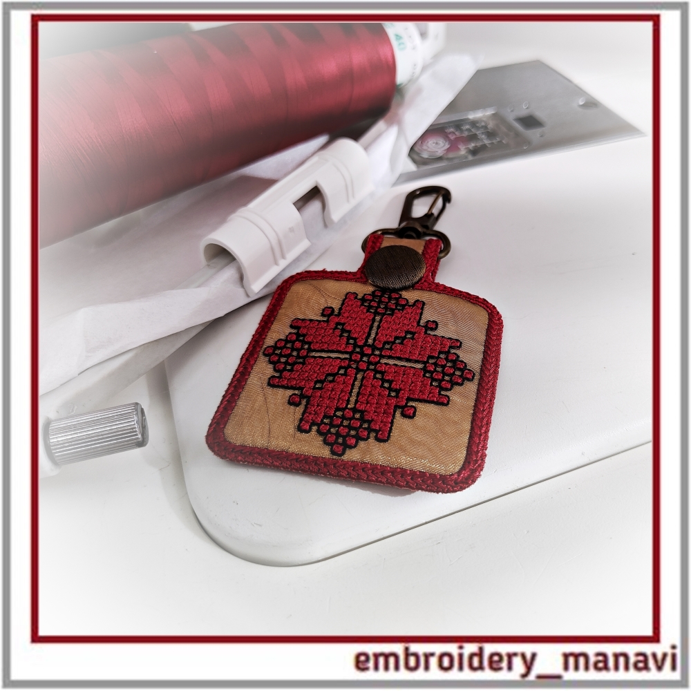 ith, in the hoop, keeping tradition, alatyr, star, cross stitch, amilet, key fob, keychain