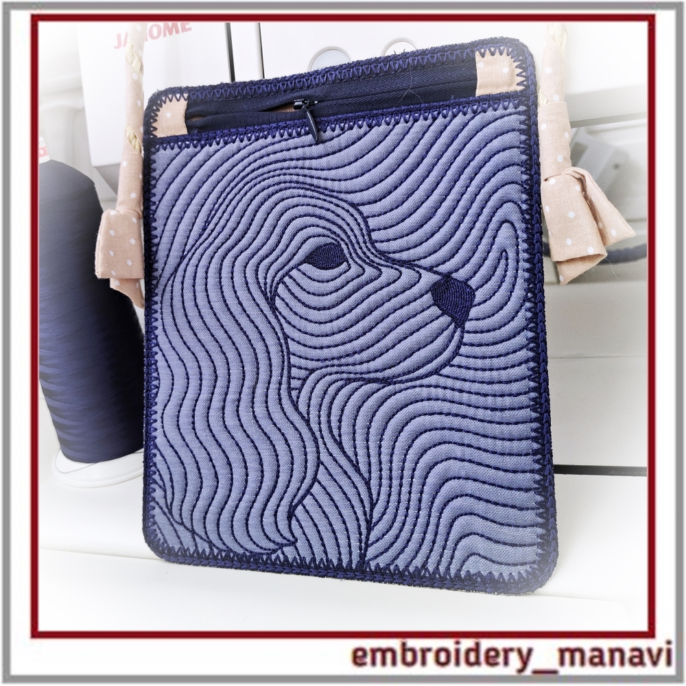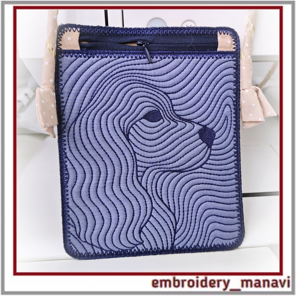 👉Bag, case, purse with quilting Dog with zipped. Step-by-step instruction. A gift for Mother's Day. Digital Machine Embroidery Design in 1 hooping. Bag in the hoop. Size 6.30 x 7.87". ITH embroidery design. In The Hoop embroidery project.