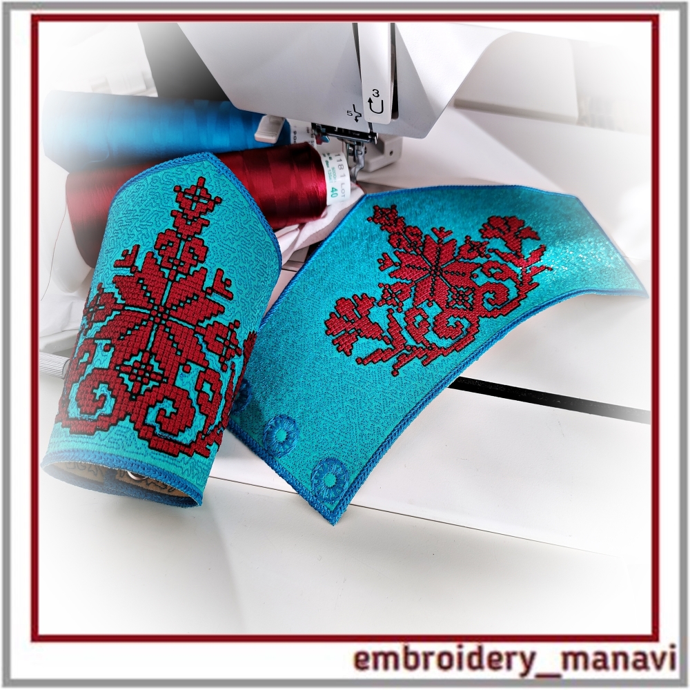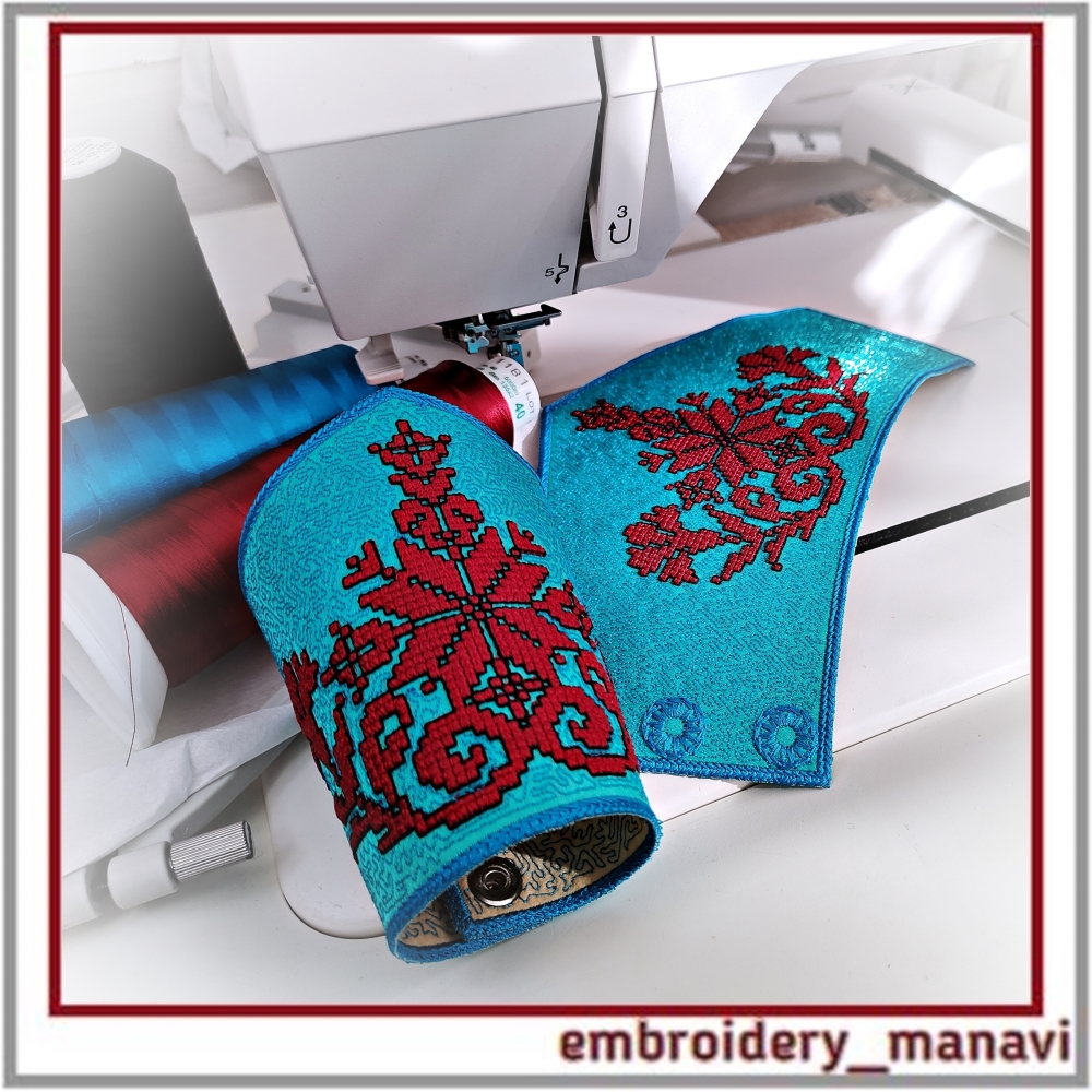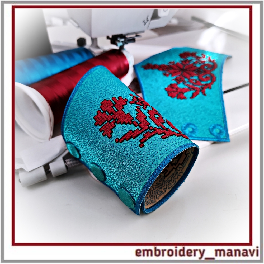 👉Elevate your jewelry crafting with this ITH cuff bracelet machine embroidery design by Embroidery Manavi 05. This protective talisman features a unique sacred composition: the Alatyr Star for balance, the World Tree for ancestral connection, Cornflowers (Vasilki) for purity, and Uzhi (Snake symbols) for protection of the home and wisdom. Digitized with a realistic French Knot Effect for a rich 3D texture. The design is optimized for "In The Hoop" construction and includes two sizes for 6.6 and 7.4-inch wrists. A step-by-step video guide is included for a flawless finish.