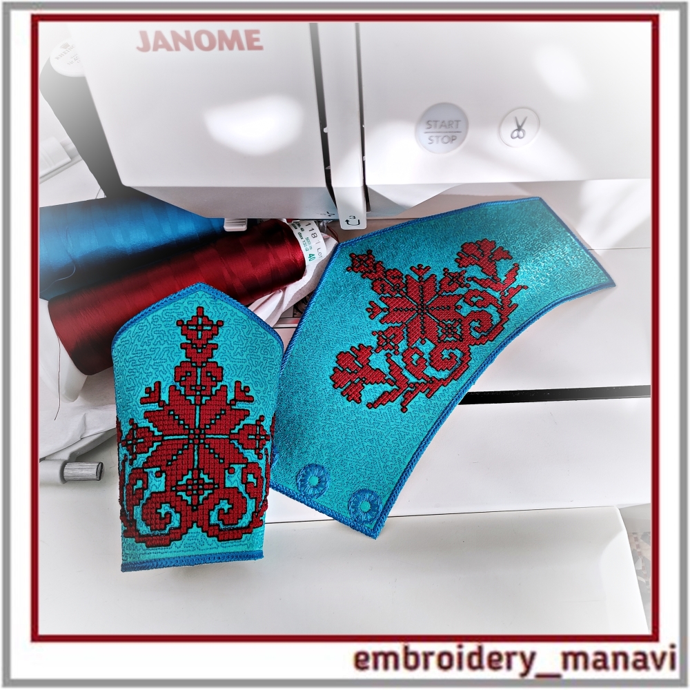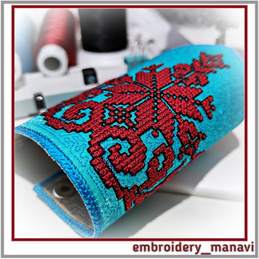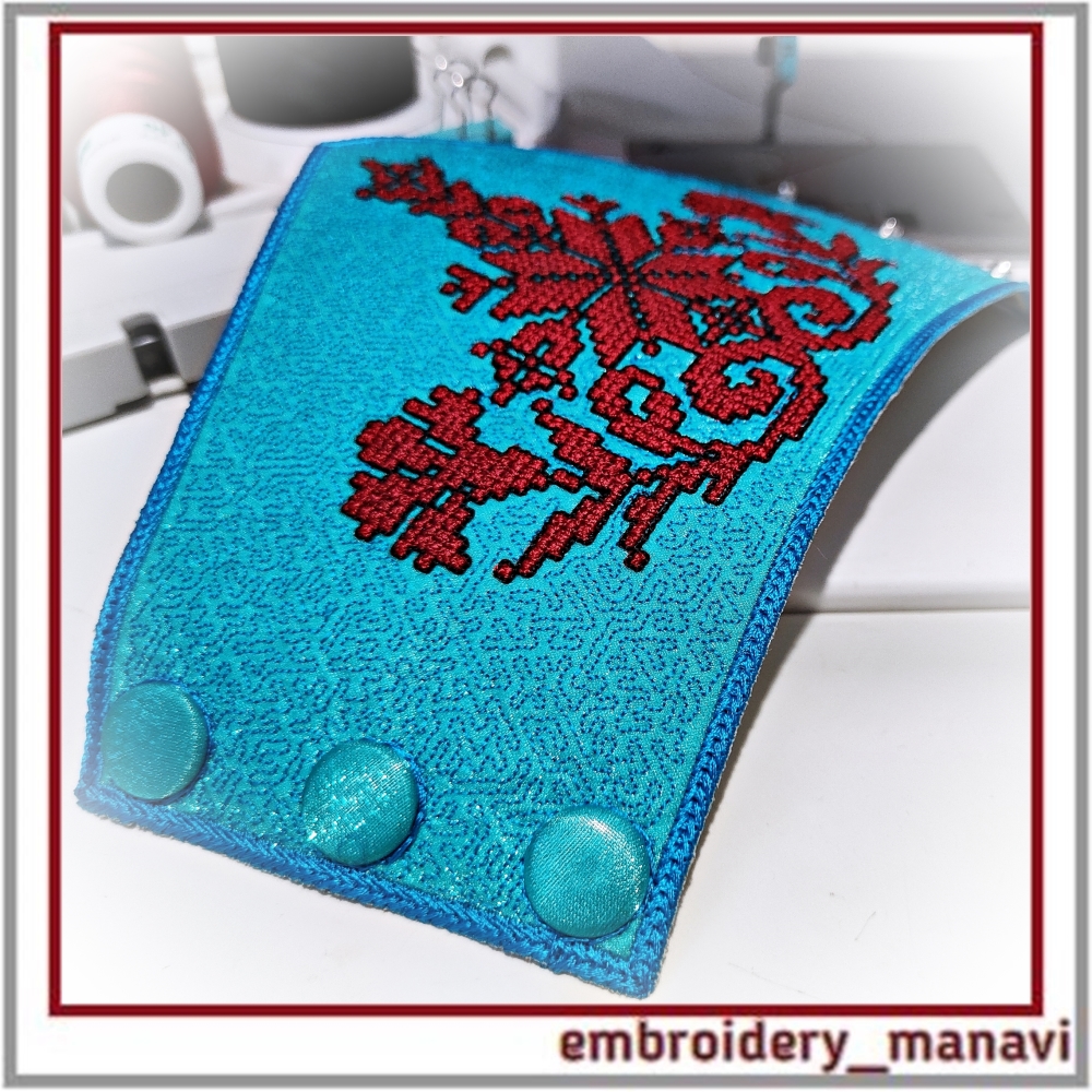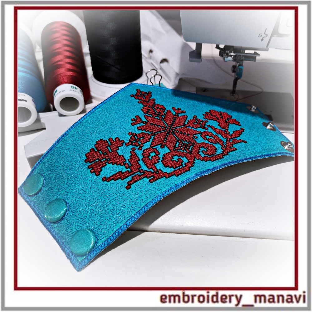👉Elevate your jewelry crafting with this ITH cuff bracelet machine embroidery design by Embroidery Manavi 05. This protective talisman features a unique sacred composition: the Alatyr Star for balance, the World Tree for ancestral connection, Cornflowers (Vasilki) for purity, and Uzhi (Snake symbols) for protection of the home and wisdom. Digitized with a realistic French Knot Effect for a rich 3D texture. The design is optimized for "In The Hoop" construction and includes two sizes for 6.6 and 7.4-inch wrists. A step-by-step video guide is included for a flawless finish.