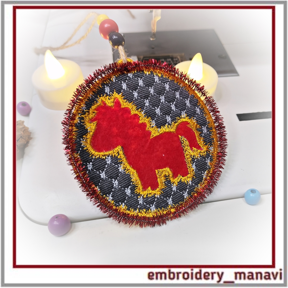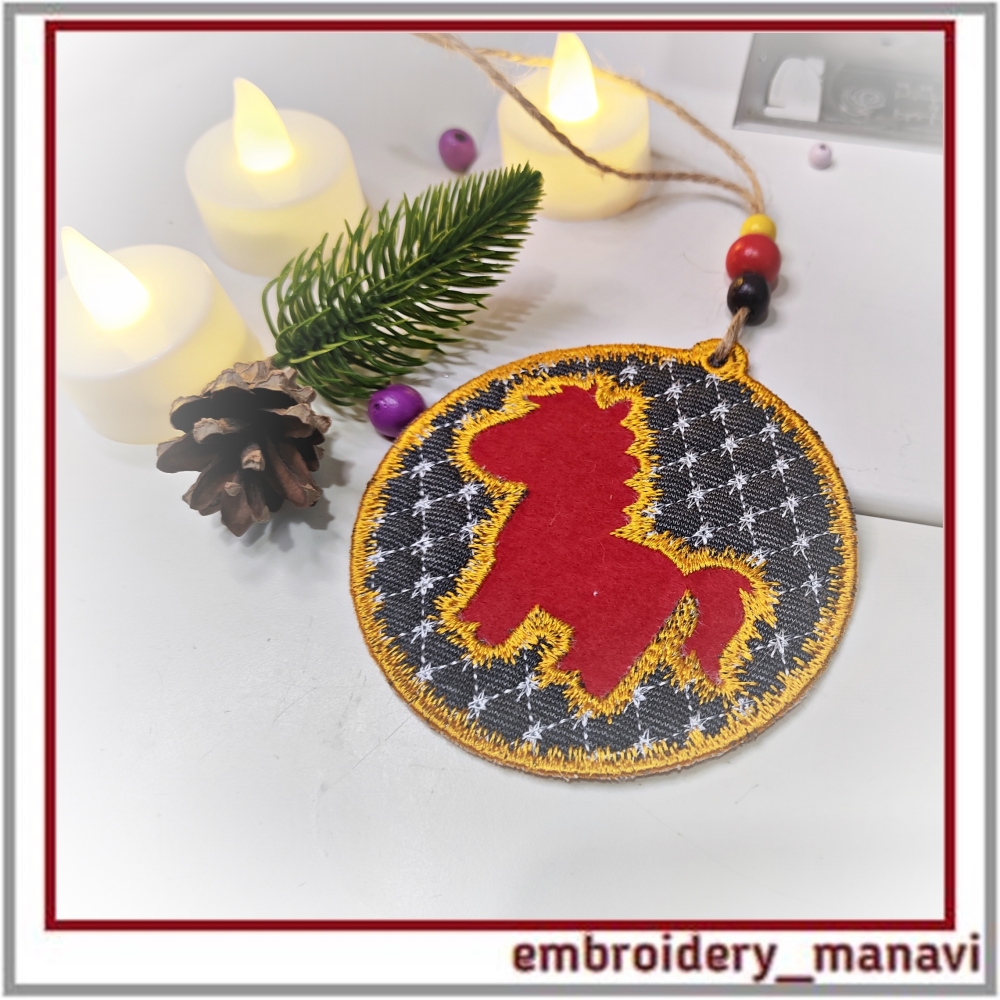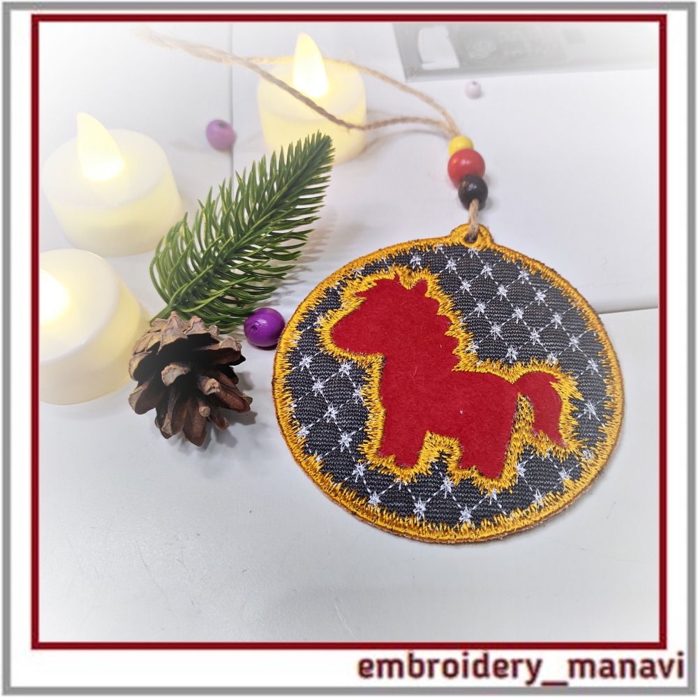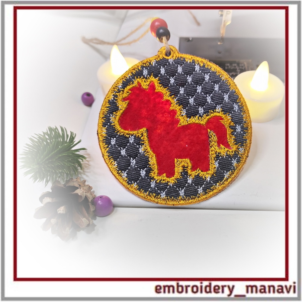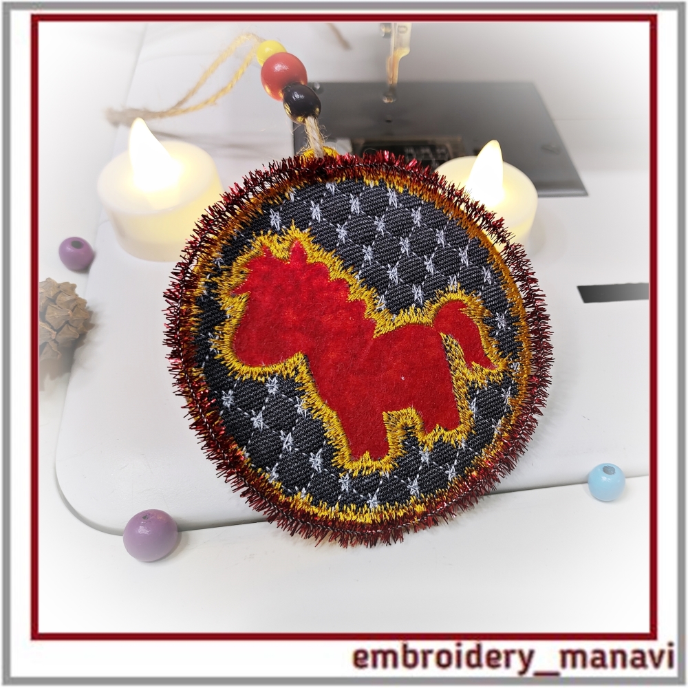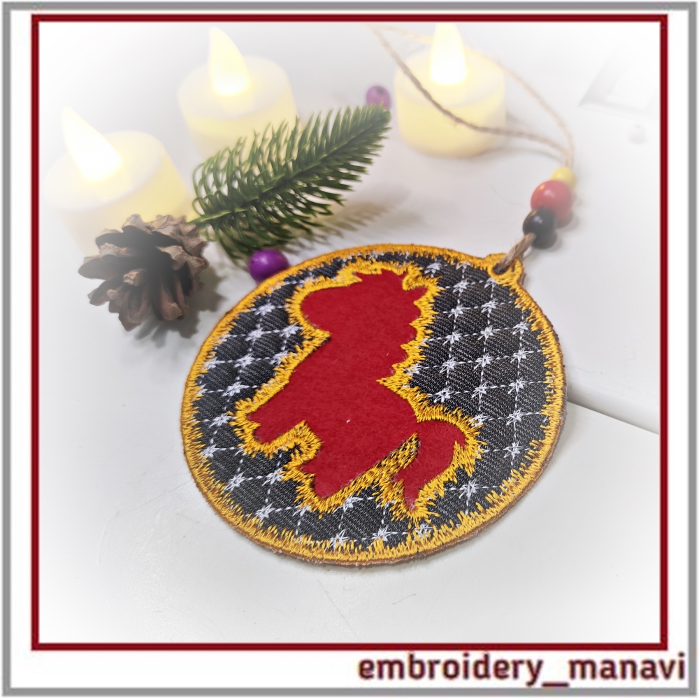 👉Celebrate the holidays with this in-the-hoop horse pendant! A festive 4x4 embroidery design featuring a red horse, snowy accents, and beaded charm. Perfect handmade gift idea with instant download and step-by-step instructions.