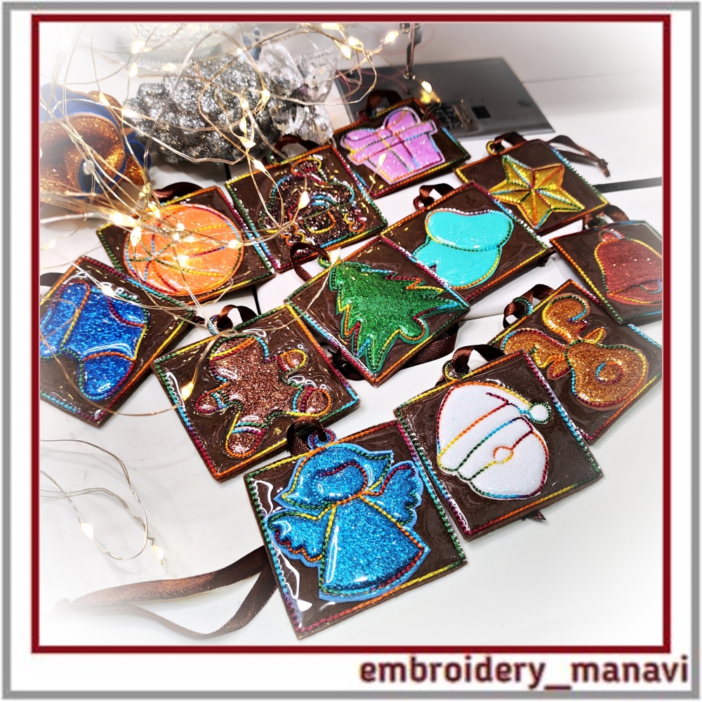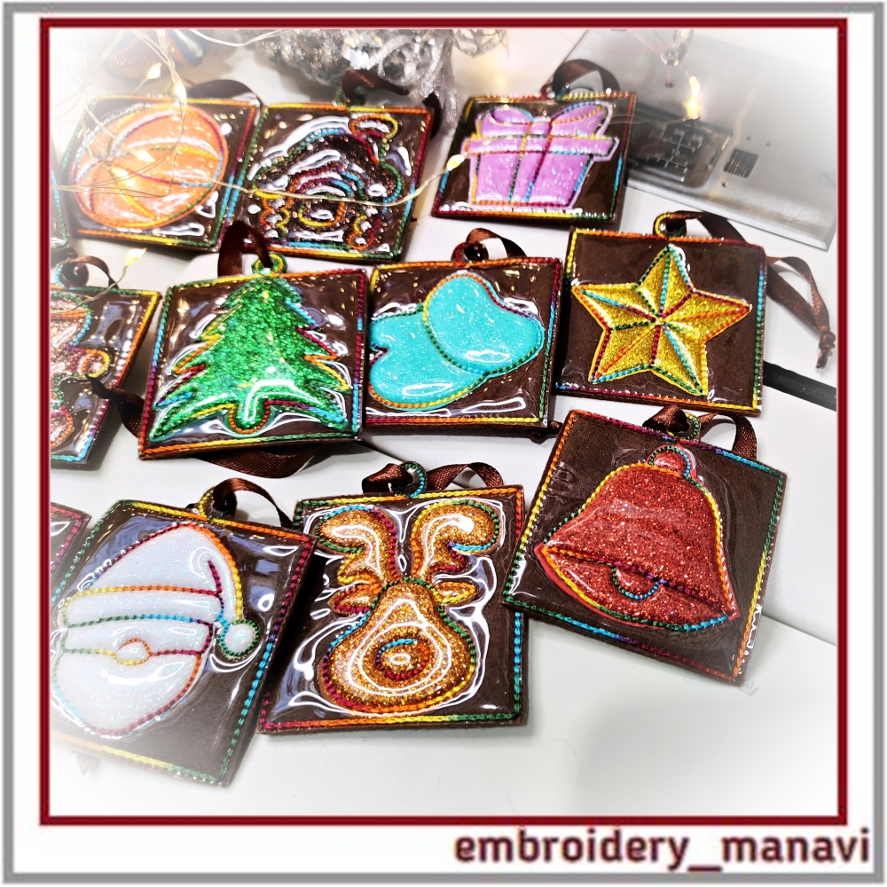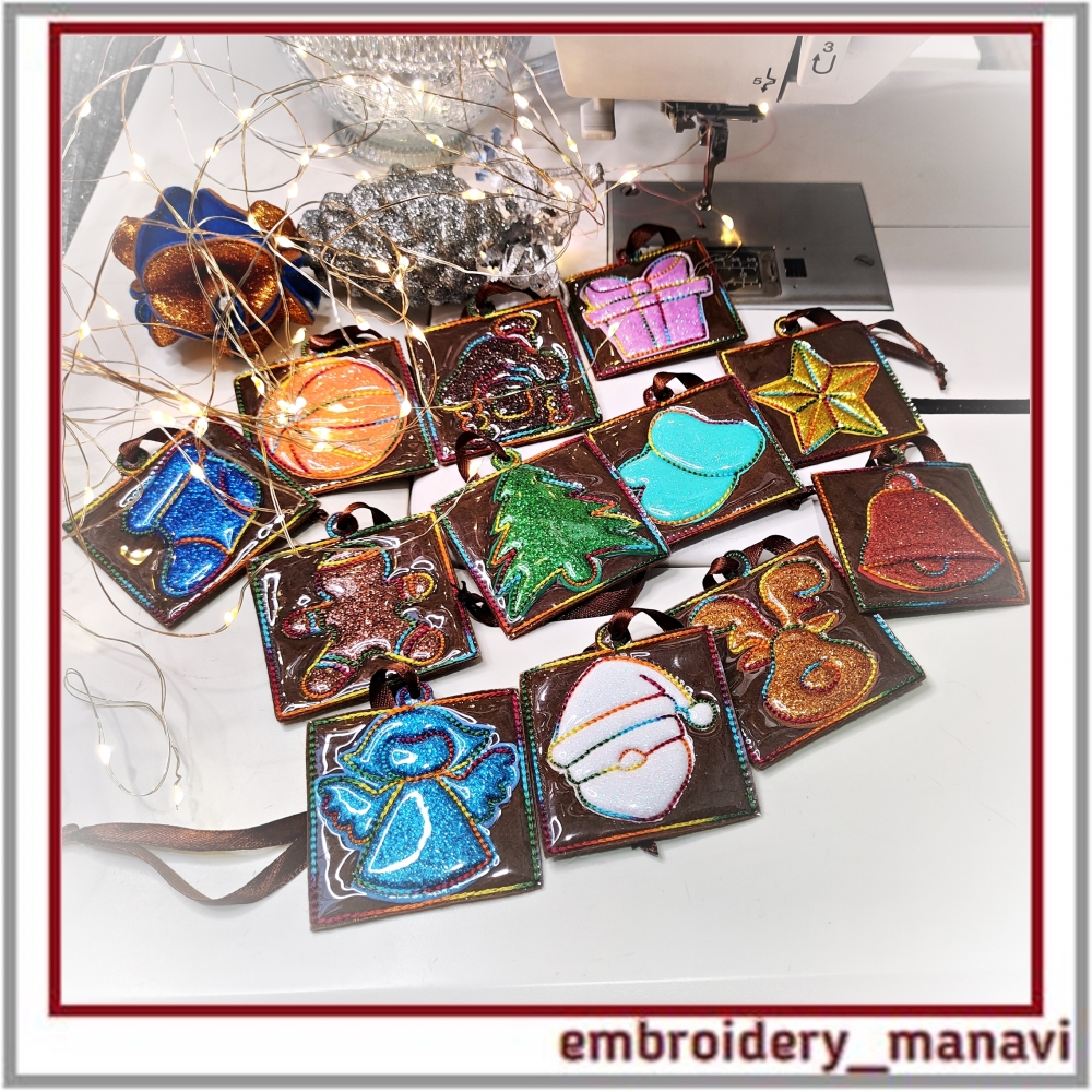 👉Digital Design Machine Embroidery. Christmas Set of 12 patterns for décor pendants. In The Hoop embroidery project. May be a good family present. New Year's decor, decoration. ITH embroidery design.