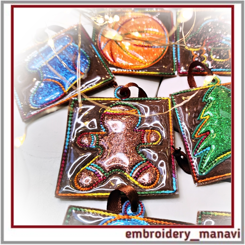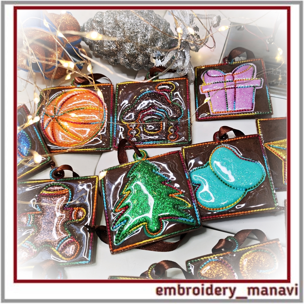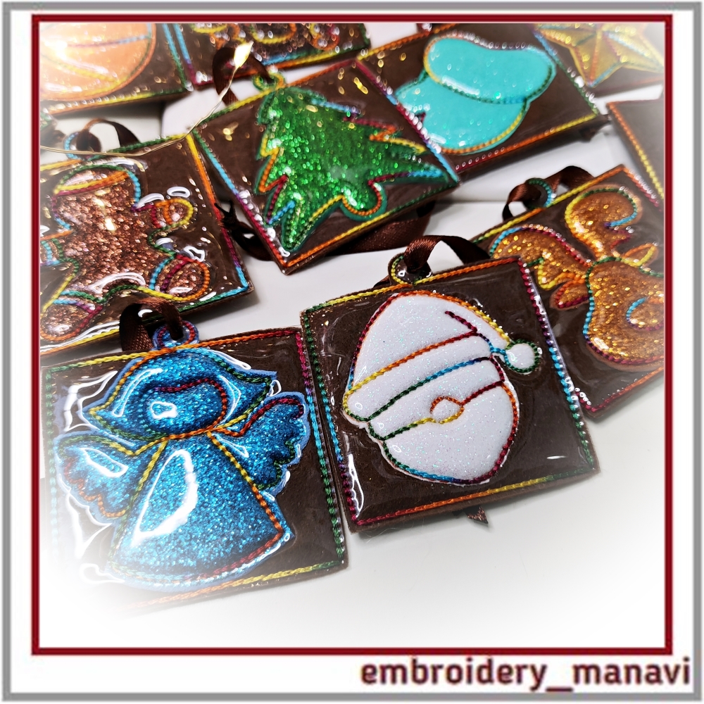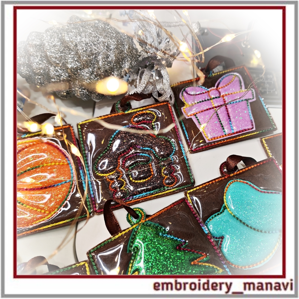👉Digital Design Machine Embroidery. Christmas Set of 12 patterns for décor pendants. In The Hoop embroidery project. May be a good family present. New Year's decor, decoration. ITH embroidery design.