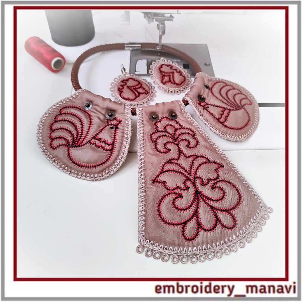 👉In The Hoop Digital machine embroidery design for a folk-style chest ornament and earrings with floral quilting and FSL edge finish. Fits 5.51 x 7.87 hoops. Ideal for accessories, costumes, and textile art. Instant download. 👉The designs purchased from me are subject to the rule of prohibition of transferring them to third parties and resale. The design can only be used for embroidery on products for personal use, as well as on finished products for sale. The electronic product remains the property of the author. 👉All designs are tested. 👉This is an embroidery file, NOT a patch and NOT and finished shirt. You must have an embroidery machine to use these designs. 👉PLEASE NOTE: 4.80 x 7.57, 122.0 x 192.4 mm., 16810 st., 4.34 x 4.42, 110.3 x 112.3 mm., 8310 st., 4.34 x 4.42, 110.3 x 112.3 mm., 8310 st., 3.85 x 3.84, 97.9 x 97.6 mm., 12330 st. 👉9 FORMATS: pec, pes, jef, exp, vip, dst, hus, vp3, xxx. 👉All designs are available for instant download! 👉Due to the electronic nature of the product refunds are not offered. 👉Please note that I am not responsible for the quality of the design if you resize it, convert it, or edit it in any way.