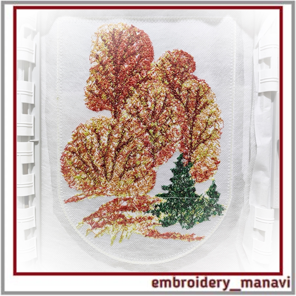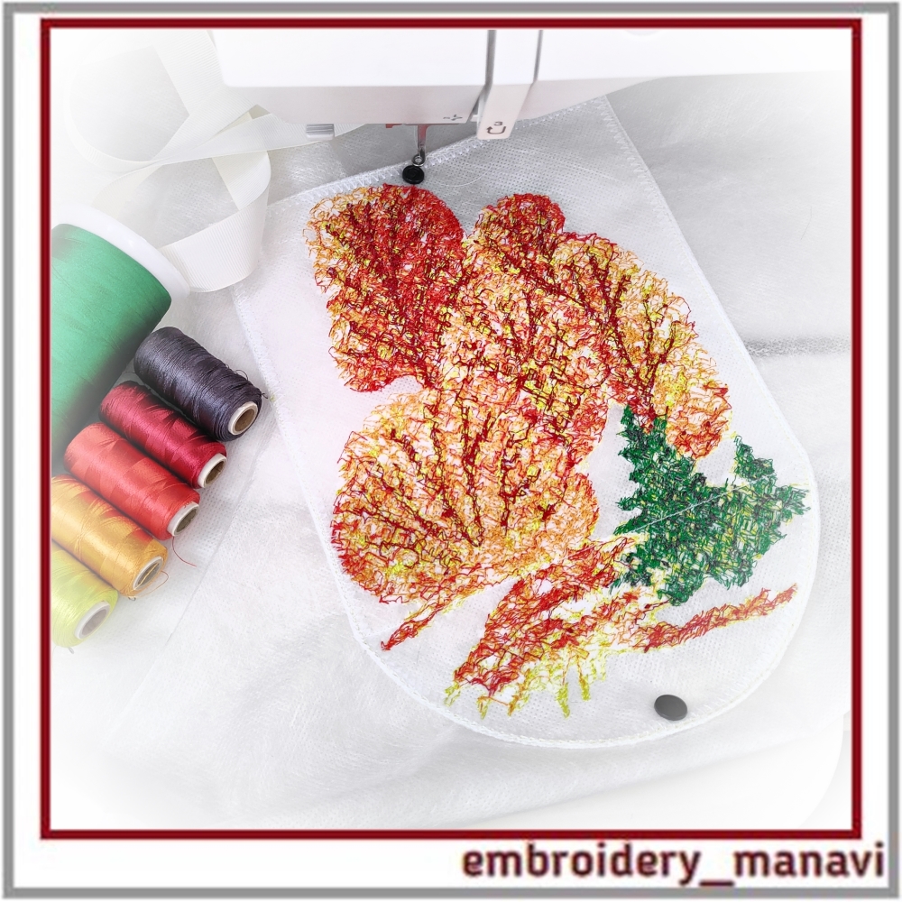 👉Celebrate the season with this delicate Watercolor Autumn Pocket — a digital machine embroidery design crafted for foldable tote bags. Designed with a light photo stitch technique to preserve transparency and softness, this piece brings the warmth of fall to your eco-friendly bag projects.