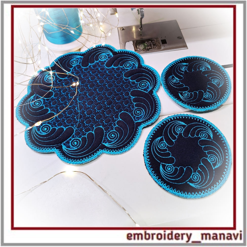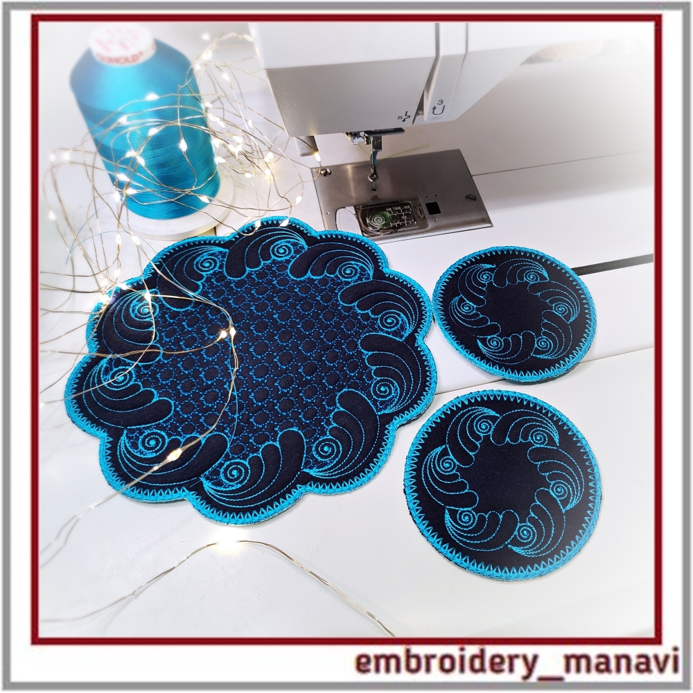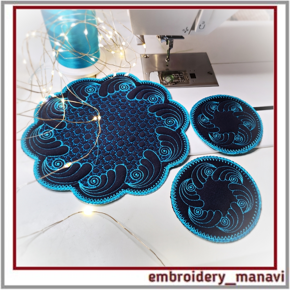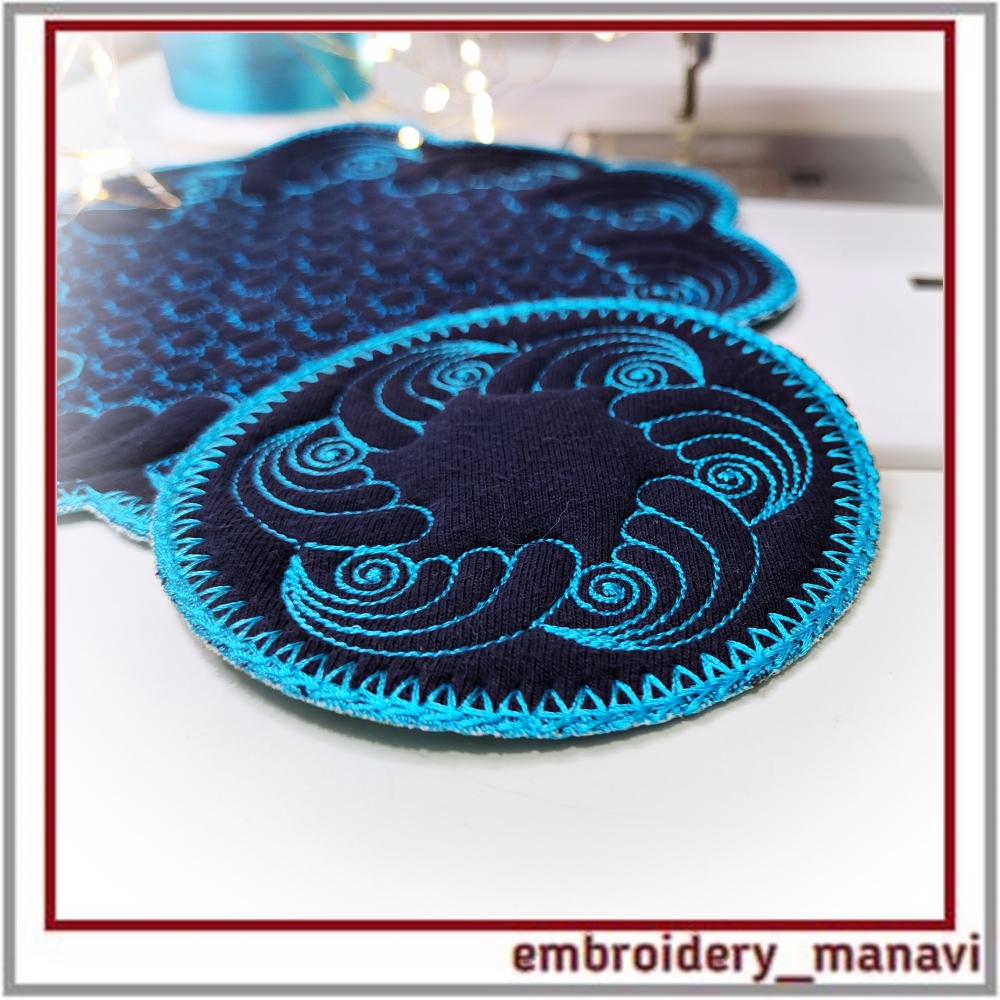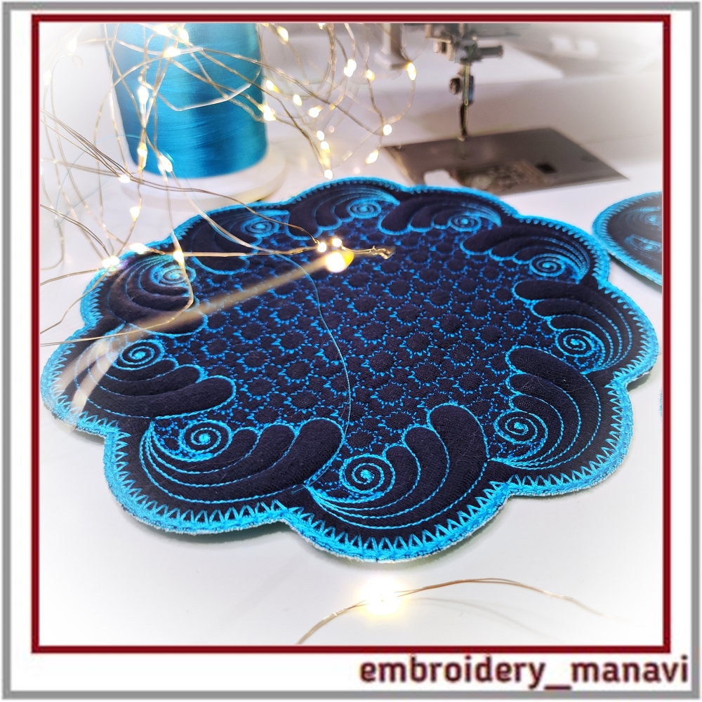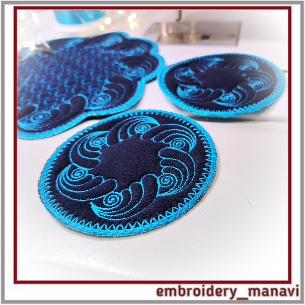 👉This In The Hoop embroidery design lets you create quilted coasters and placemats with a sea-inspired motif. Available in two sizes (8x8 and 4x4 inches), each item is finished in one hooping. Includes step-by-step instructions. Perfect for home decor or gifts.