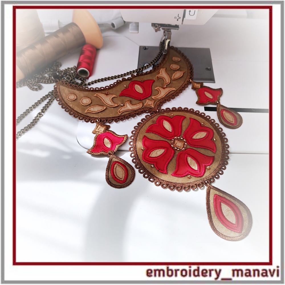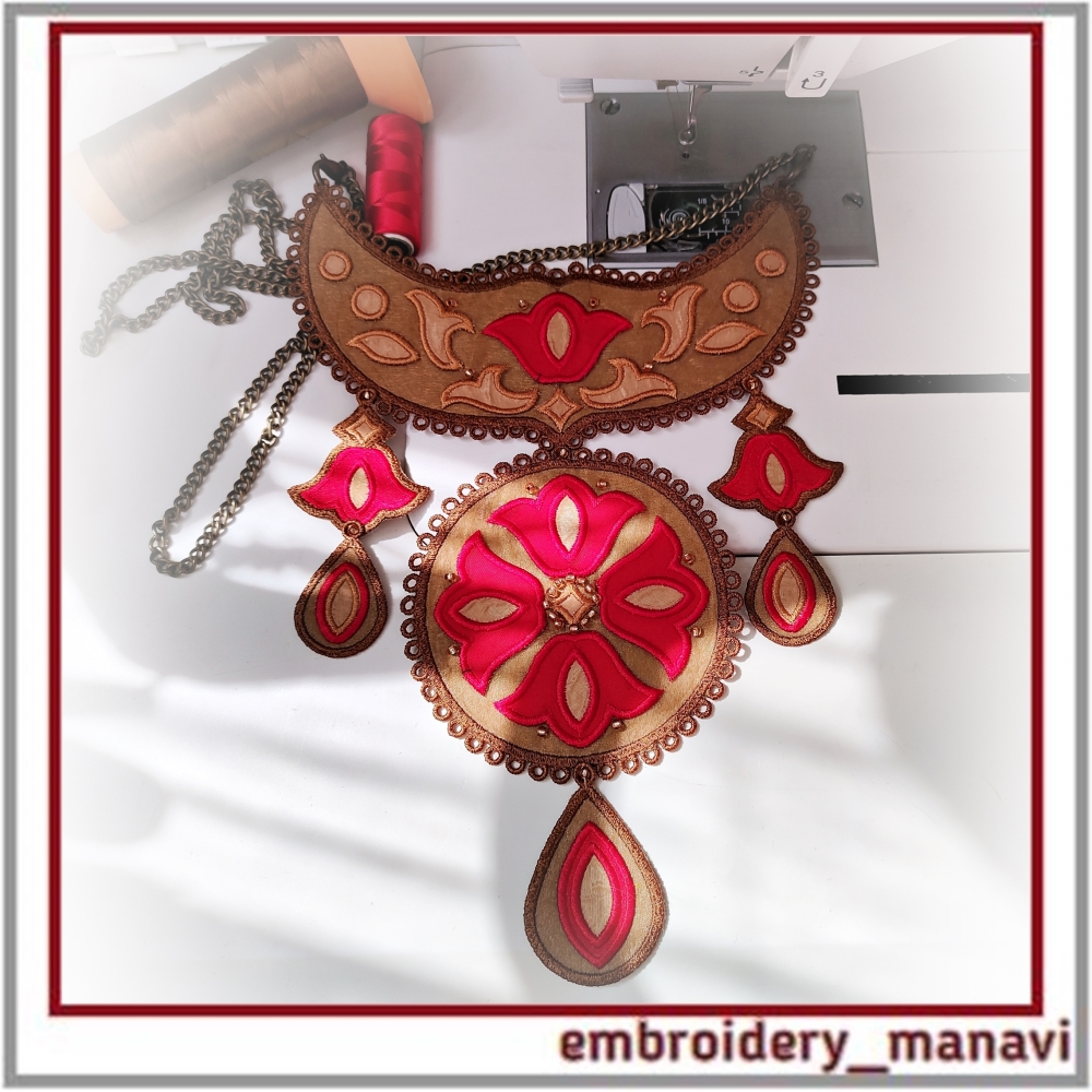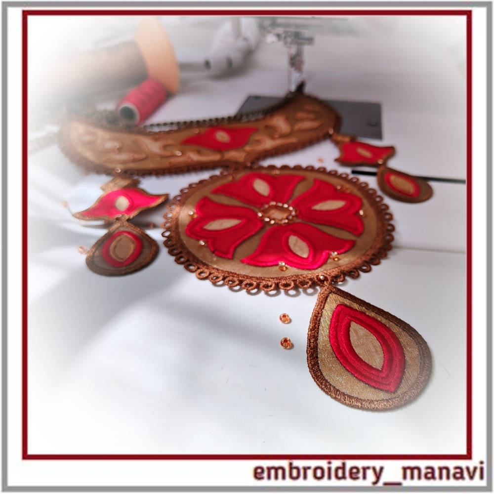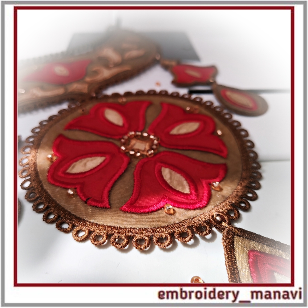 embroidery necklace, 3d embroidery design, custom art, digital embroidery, machine applique, flower design, FSL embroidery, boho necklace, flower necklace, boho jewelry, unusual necklace, breast jewelry, ITH earrings, embroidery bracelet, embroidered necklace, boho style, digital machine embroidery design, In The Hoop project, Instant download