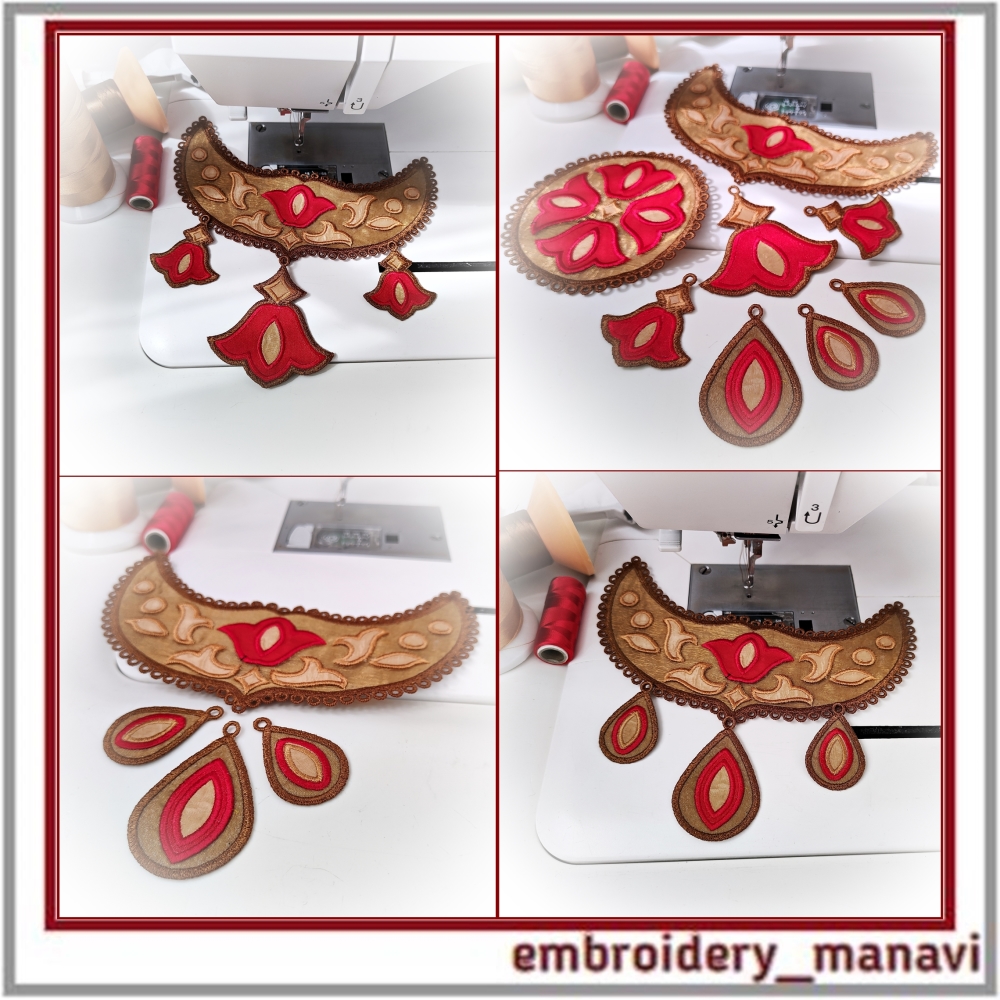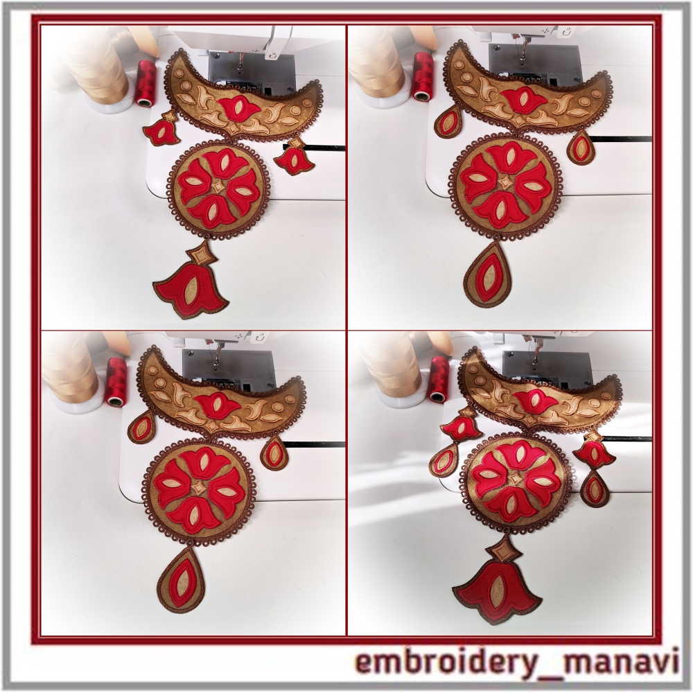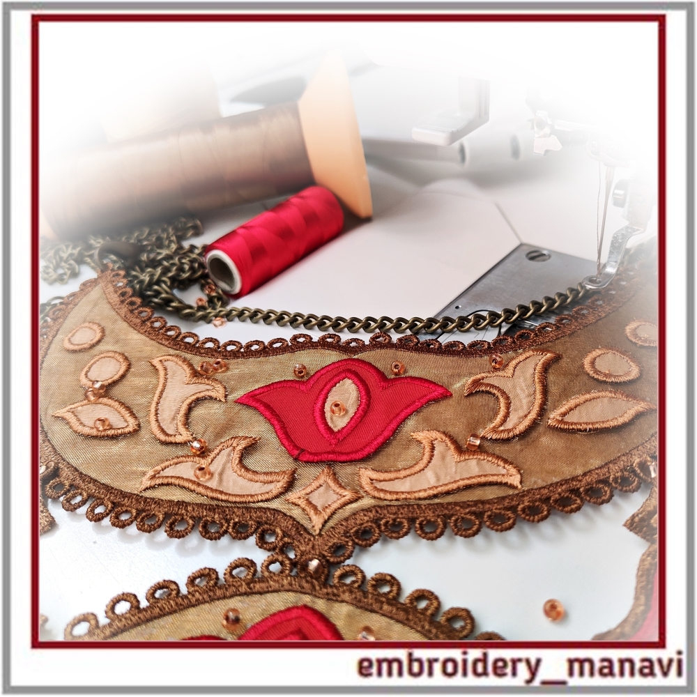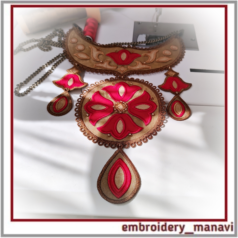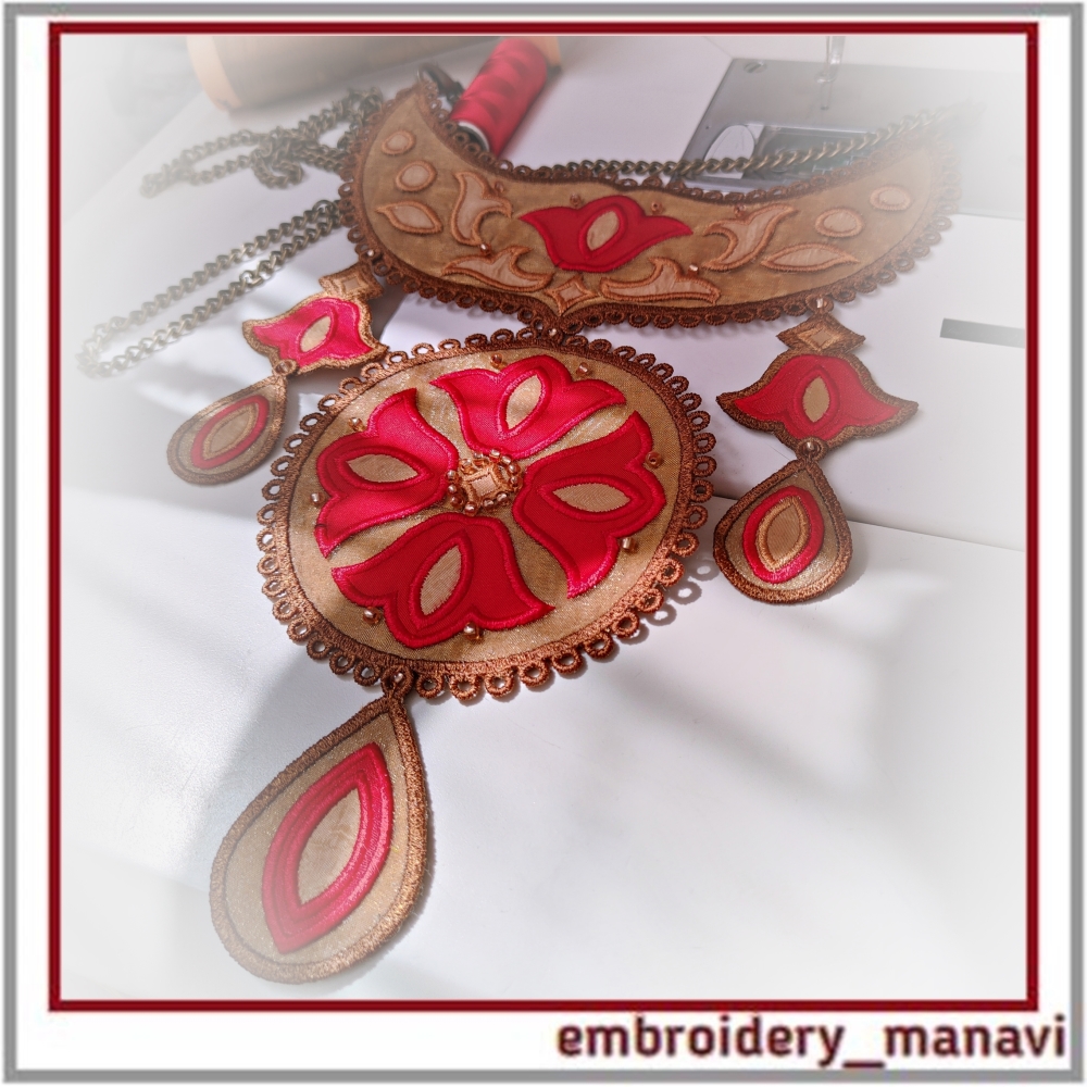 embroidery necklace, 3d embroidery design, custom art, digital embroidery, machine applique, flower design, FSL embroidery, boho necklace, flower necklace, boho jewelry, unusual necklace, breast jewelry, ITH earrings, embroidery bracelet, embroidered necklace, boho style, digital machine embroidery design, In The Hoop project, Instant download