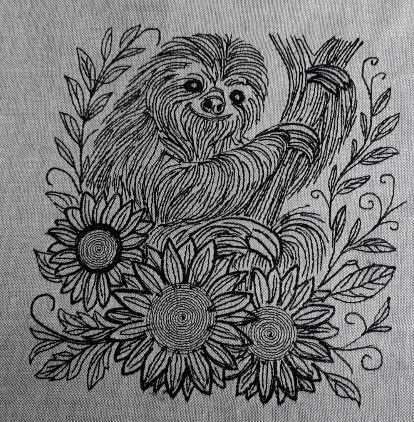 This sloth line embroidery design features Lazy Day Sloth hanging out in a swirl of sunflowers with a grin that says, Deadlines? Never heard of them. Perfect for hoop art, totes, or cozy cushions that need a touch of woodland whimsy. Extra dreamy stitched in variegated threads, where every petal and strand of fur melts into lazy rainbow perfection.