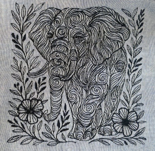 This line embroidery design showcases the Meadow Sovereign, a noble elephant walking through a frame of blossoms and leafy charm. Regal yet tender, she embodies the timeless spirit of the wild, wrapped in swirls of stitched poetry. Ideal for hoop art, cushions, totes, or safari-inspired dÃcor