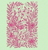 Finished size 4.79"W x 7"H Frame Size 5x7 Stitch count: 19 979 Formats Included: JEF, EXP, PES, PEC, VIP, VP3, HUS, SHV, DST, XXX Where music meets nature – this line embroidery design entwines delicate florals with flowing leaves and a swirl of dancing musical notes. Perfect for music lovers who want to bring harmony into their stitching, it works beautifully on hoop art, cushions, tote bags, or even framed wall pieces. Especially magical when stitched in variegated threads, as the notes and blooms sing together in every shade.