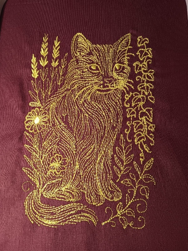 A poised kitty wrapped in a frame of wildflowers and curling vines, this design brings a soft, botanical charm with a touch of feline attitude. Perfect for hoop art, tote bag panels, or cozy cushions, and especially striking when stitched in variegated threads for extra personality.