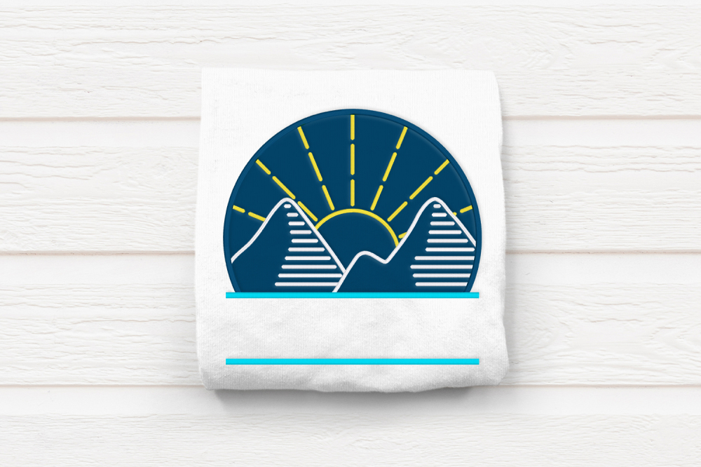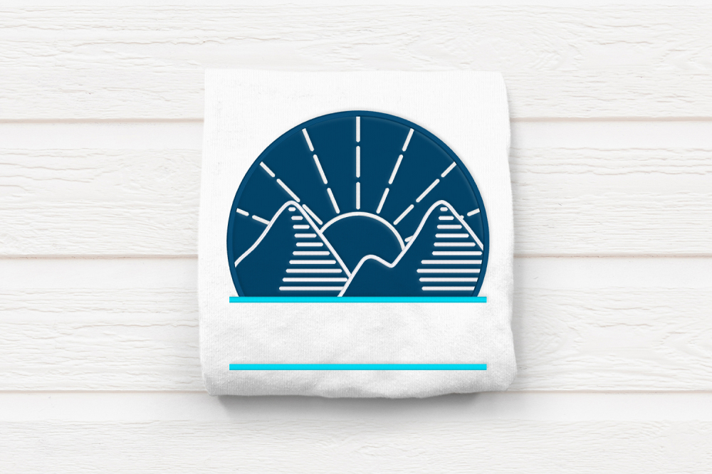 Nature lovers rejoice! This beautiful linear design features a mountain and sunset set inside of an applique circle. The satin lines can be done in a single color or use different colors for each element. The circle is split at the bottom to add your own text.