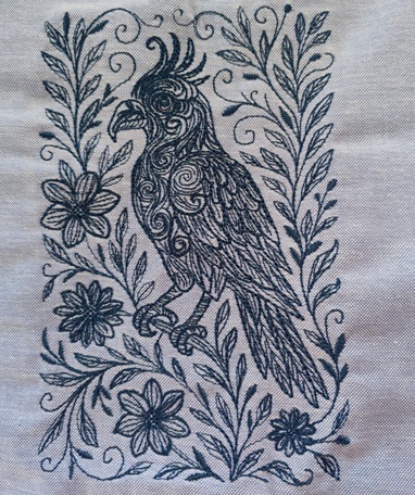 This line embroidery design features a parrot perched in mid-motion, its feathers detailed with swirling textures that bring a sense of movement and life. Surrounded by graceful flowers and leafy flourishes, the bold parrot takes center stage with its confident stance and curved beak. Ideal for hoop art, statement cushions, tote bags, or table linens, this design adds an exotic touch of the tropics to your stitching projects.