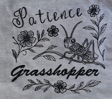 This grasshopper sits among blooming florals like a tiny stitched guru, reminding you (and himself) to slow down and breathe. With quirky charm, leafy details, and playful lettering, this design adds a cheeky wink to hoop art, bags, cushions, or any project that could use a stitched dose of wisdom with a side of attitude.