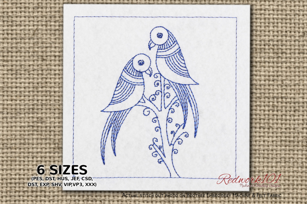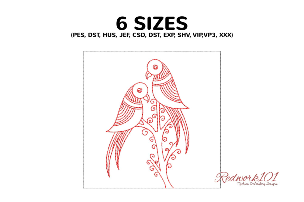 Redwork Beautiful Parrot With Flowers - 5 Sizes!