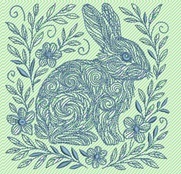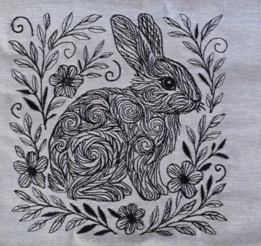 This rabbit arrives wrapped in a coat of swirling curls, looking like she hopped straight out of a doodled daydream. Nestled among blooming florals and leafy flourishes, she brings a sweet, whimsical charm to hoop art, cushions, bags, and any project that needs a stitched dose of adorable softness (with a little side-eye attitude).
