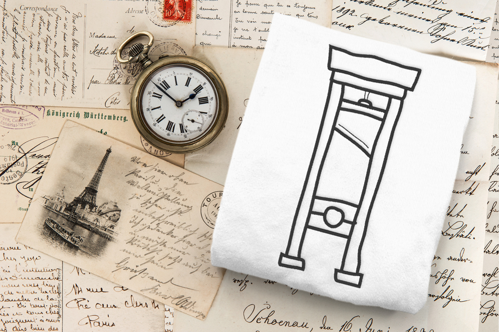 Been thinking about the French Revolution lately, for no reason in particular? This embroidery design features the phrase, "the French Revolution is my ROMAN EMPIRE" with a guillotine done in a handdrawn style. This guillotine can also be made as an outline only. Text and image stitch separately.