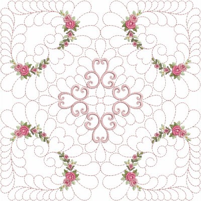 Trapunto Rose Quilt Block 8, 11 - 3 Sizes