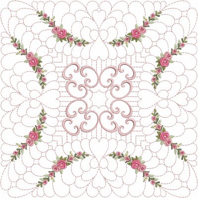 Trapunto Rose Quilt Block 8, 7 - 3 Sizes