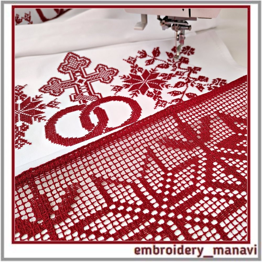 👉A detailed machine embroidery design set created for making a traditional wedding towel. The bundle includes a full cross stitch design and a matching FSL crochet border for large hoops, a three part cross stitch version with alignment stitches for smaller hoops, two additional designs with 9 count cross stitch and French knot elements for decorating other items, and a three part FSL border with an extra intermediate element for endless lace. A step by step instruction for connecting the FSL border parts is included. The ornament features Slavic protective symbols: the Alatyr star and cornflowers. All sizes and stitch counts are shown in the photos. Instant download. Original gifts made with great love. Brand: Embroidery Manavi 05.