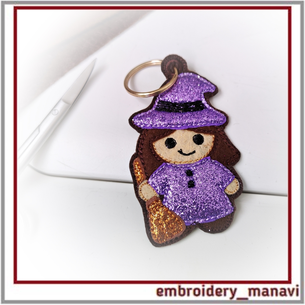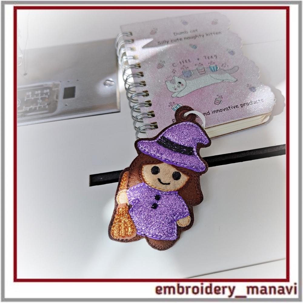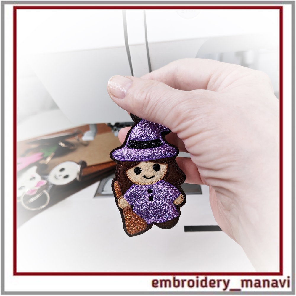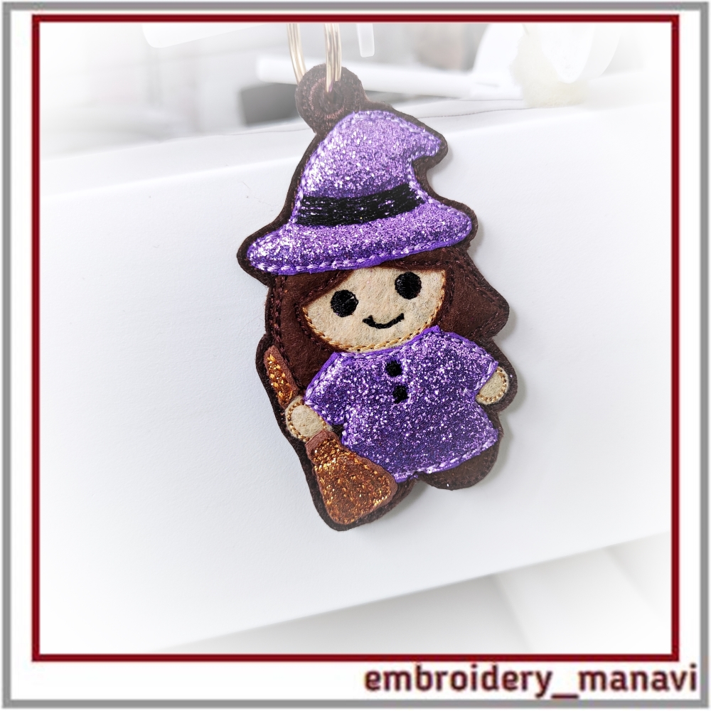 Halloween witch embroidery, in the hoop design, ITH keychain, machine embroidery Halloween, witch charm, Halloween bookmark, spooky embroidery tag, handmade Halloween accessory, quick stitch embroidery, embroidery ornament, Halloween decoration, embroidery for kids, cute witch embroidery, Embroidery Manavi 05, Instant download