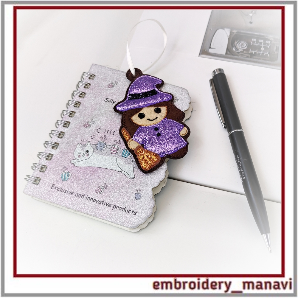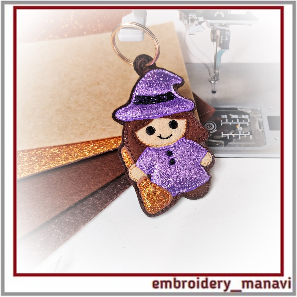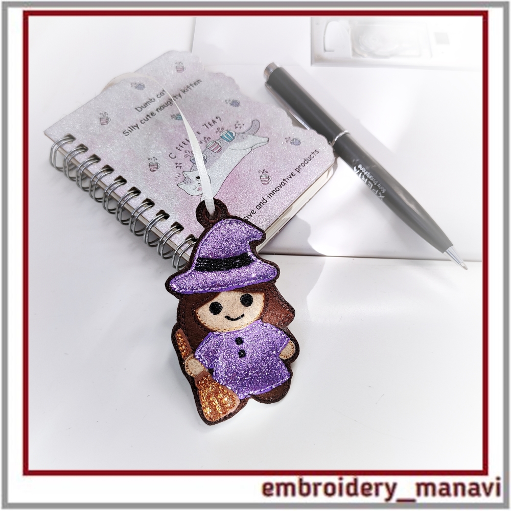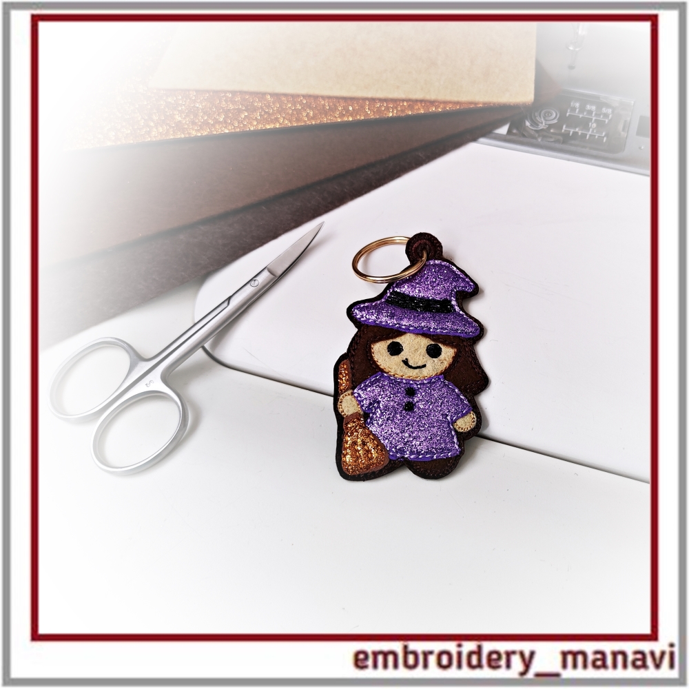 Halloween witch embroidery, in the hoop design, ITH keychain, machine embroidery Halloween, witch charm, Halloween bookmark, spooky embroidery tag, handmade Halloween accessory, quick stitch embroidery, embroidery ornament, Halloween decoration, embroidery for kids, cute witch embroidery, Embroidery Manavi 05, Instant download