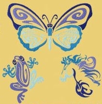 Included in this collection are a frog, lion on cliff, horse, owl, sea horse, cat, dolphin, butterfly, lizard, butterfly, swordfish, and humming bird all ready for the 4x4, 5x7, and 6x10 hoops.