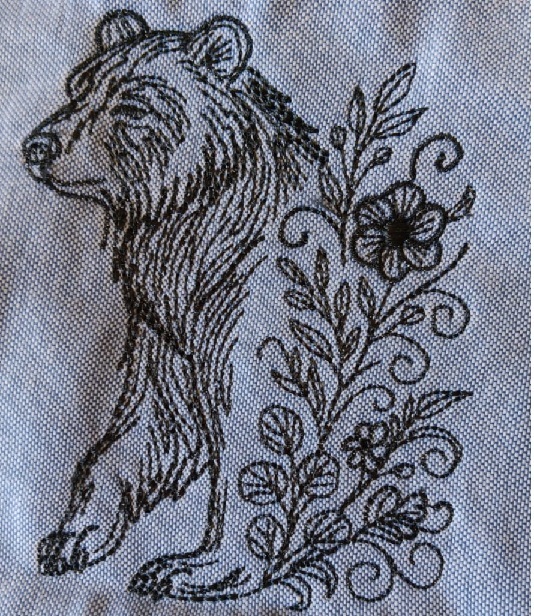 Big personality in a small hoop! This 4x4 design was made especially for stitchers with smaller hoops, proving you don't need size to capture wild charm. The bear's noble stance, framed by blossoms and leafy swirls, brings both strength and elegance to your projects. Perfect for hoop art, totes, cushions, or rustic kitchen linens and extra stunning when stitched in variegated threads.
