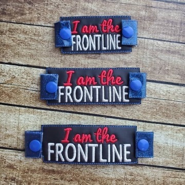 mask, attachment, vinyl, in the hoop, words and phrases, essential, occupations, frontline, nurse, medical, doctor, EMT, veterinarian, grocery, police, firefighter, fireman, security, dentist