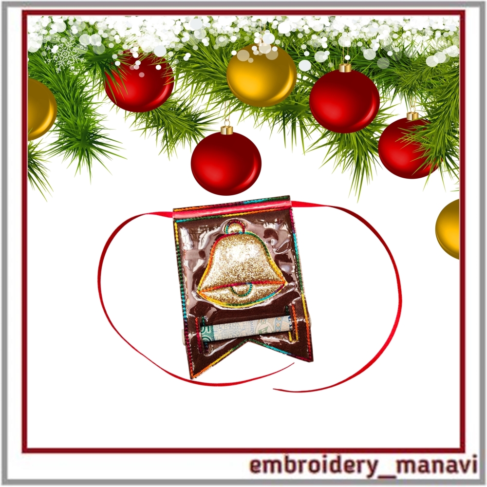- Digital Design Machine Embroidery. Tutorial. A money flag, a Christmas wallet, a gift pendant or Christmas tree ornament with Applique Bell. Finished size 2.8 x 3.88 (70 x 97 mm). In The Hoop 4x4 embroidery project. May be a good family present. Christmas decoration. ITH embroidery design.
