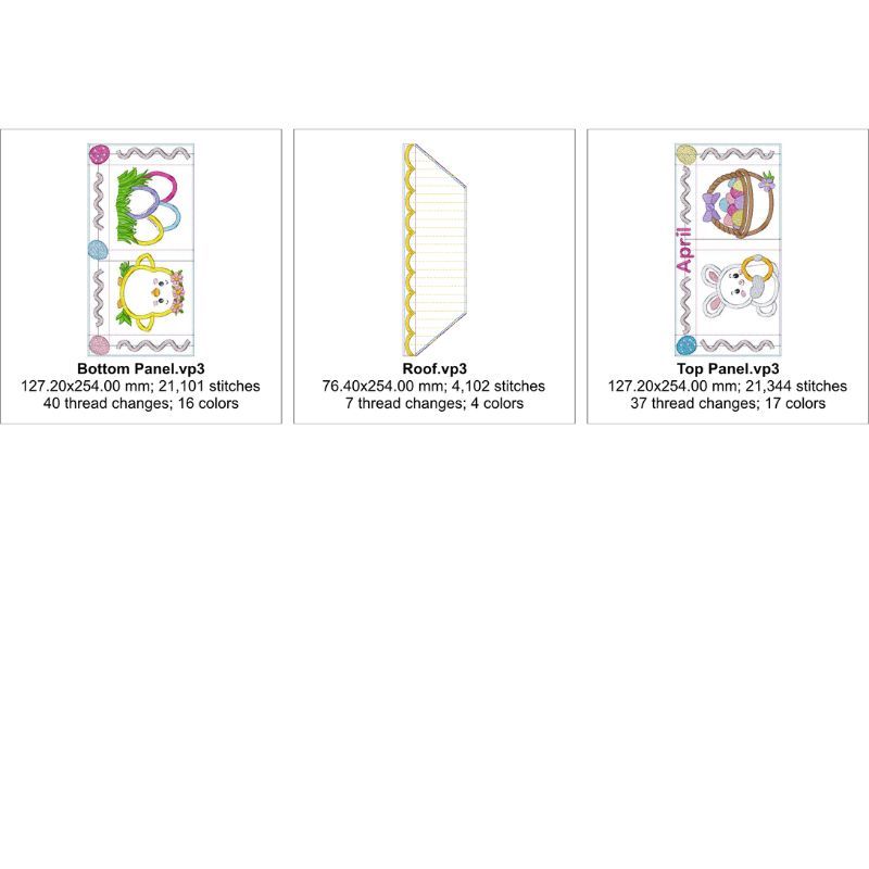 This adorable April themed ITH house mini quilt is made in 3 hoopings. Each panel is made in the hoop. The panels and final completion is done using a sewing machine.