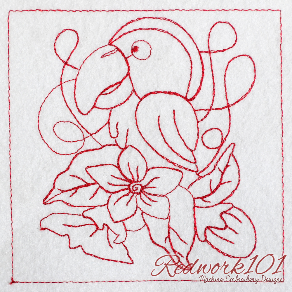 redwork, parrot, birds, seasons, summer, mega, boys, girls